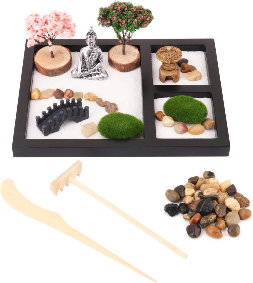Mini Kit de jardin Zen avec brûleur d'encens en bois bouddhisme religieux décor de bureau résine sable jardin pour bureau