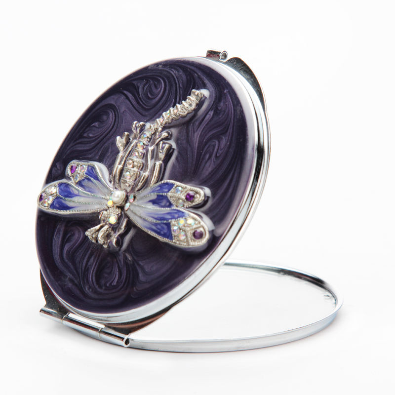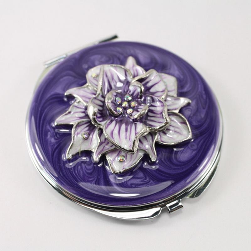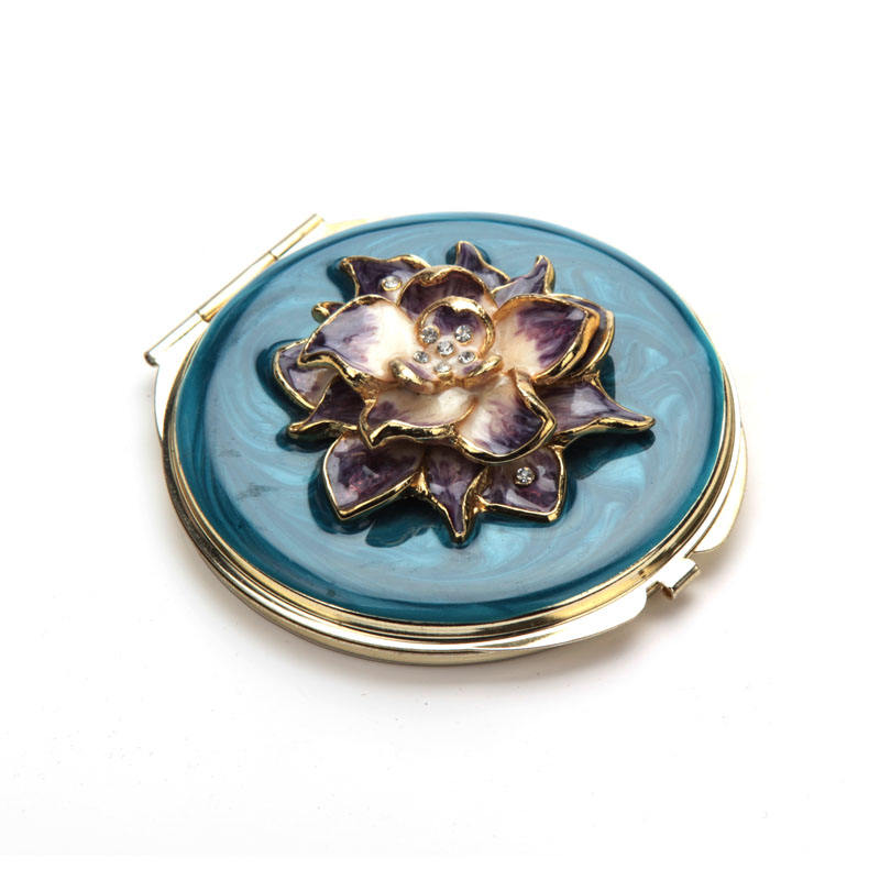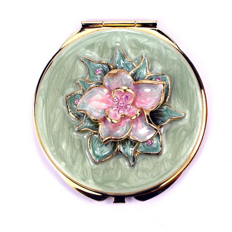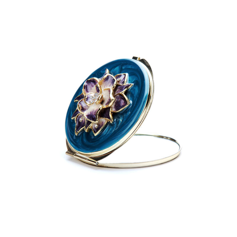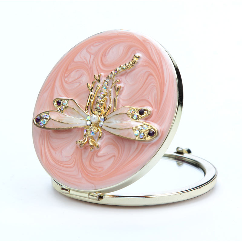 Mini miroir compact de maquillage en métal pliable double face en alliage de zinc émaillé flamant rose