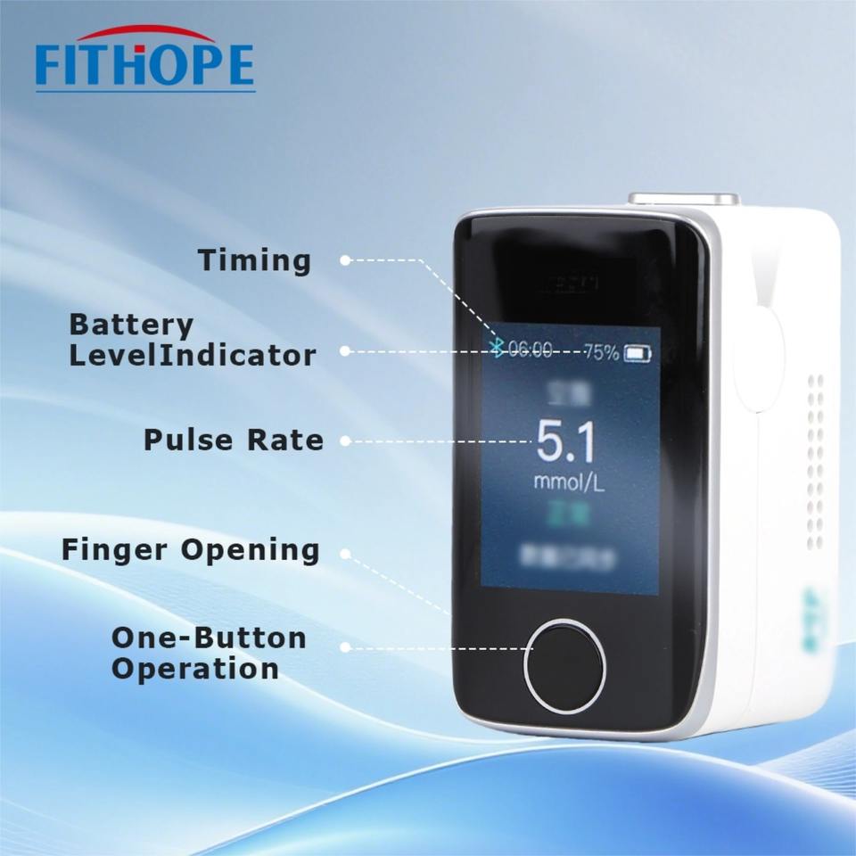 Fithope Moniteur glycémie non invasif, mesure continue, 5V/2A (100–240V), CE RoHS ISO9001/13485, avec câble de charge