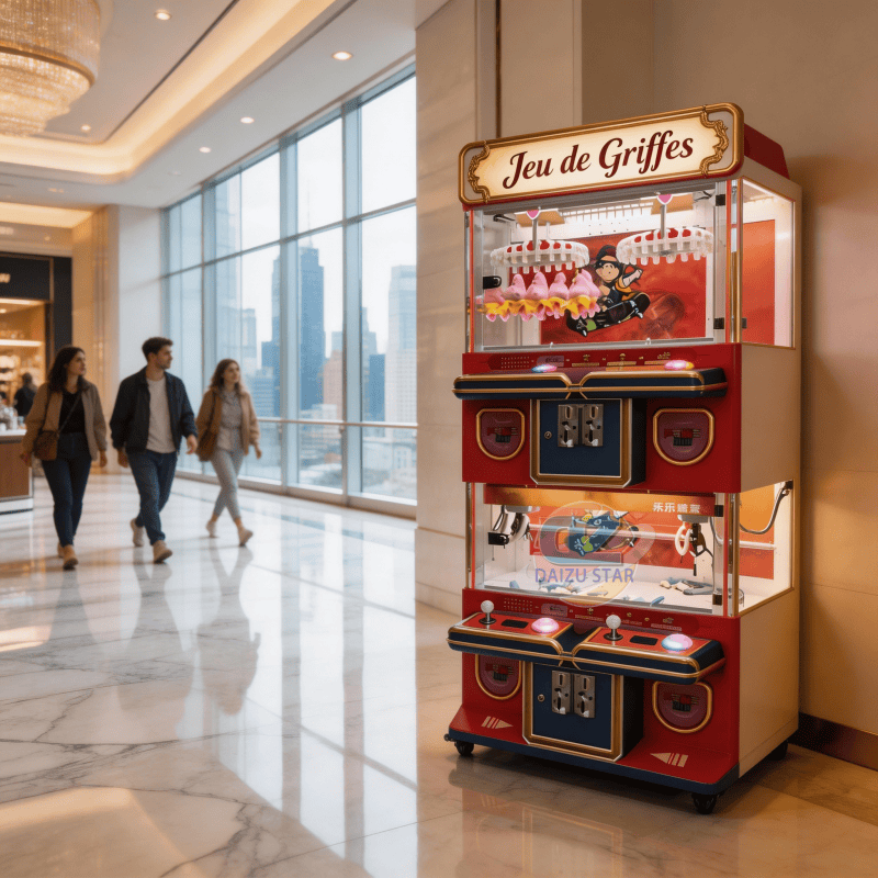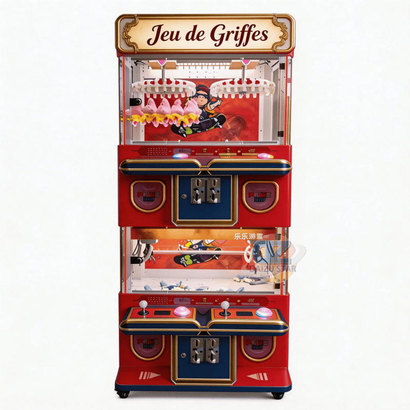 Mini-machine à grue pour 4 joueurs avec accepteur de pièces et lecteur de cartes, jeu d'arcade personnalisé, son réaliste, lumières clignotantes, version anglaise