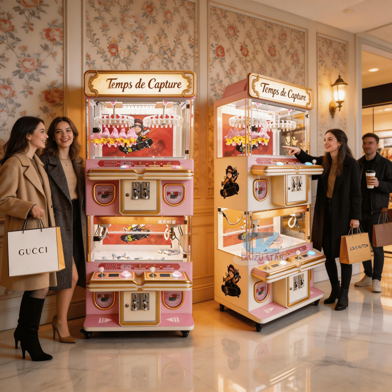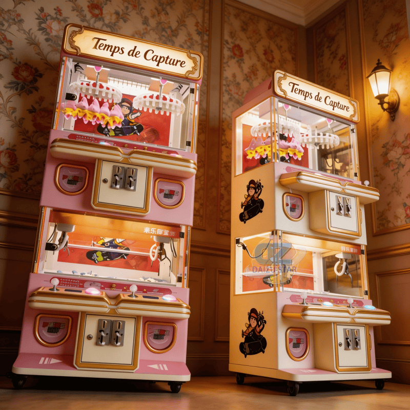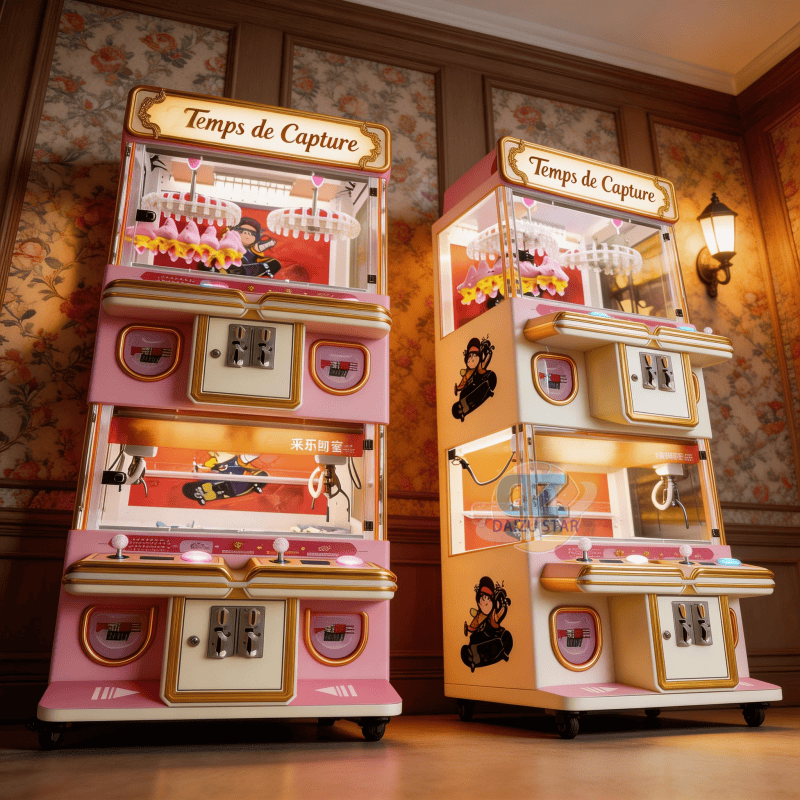 Mini-machine à grue pour 4 joueurs avec accepteur de billets et de pièces, lecteur de cartes, jeu d'arcade personnalisé, son réaliste et lumières clignotantes en métal