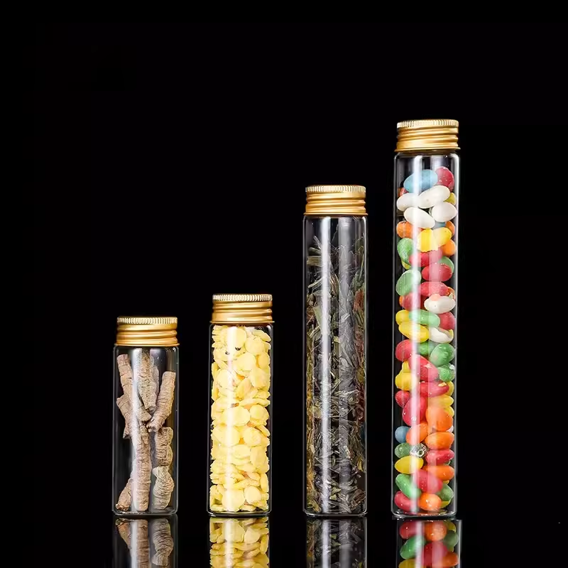 Mini clear Glass Tube 5ml 10ml 25ml 30ml 50ml 60ml 100ml Glass Wishing Small Drift Bottle Vials with Cork Aluminum Screw Cap
