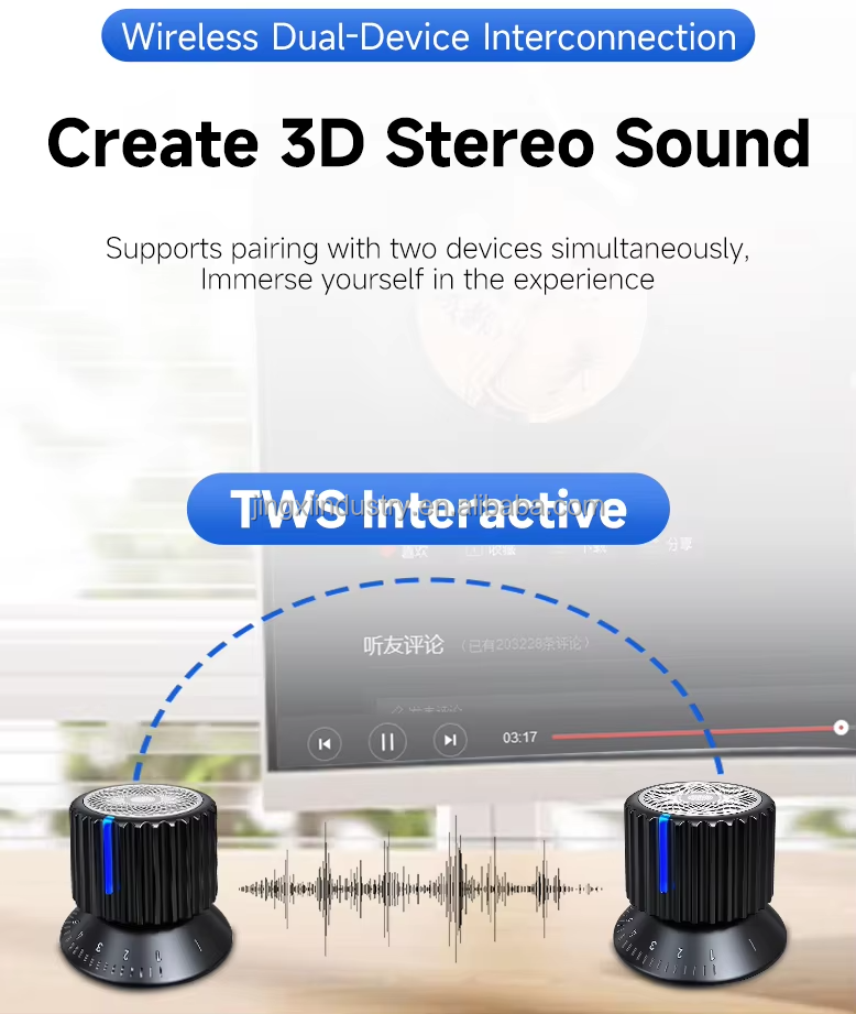 Mini haut-parleur avec LED RGB intégrées, base magnétique, étanche IPX-5 pour fixation sécurisée sur surfaces métalliques, dos de smartphone
