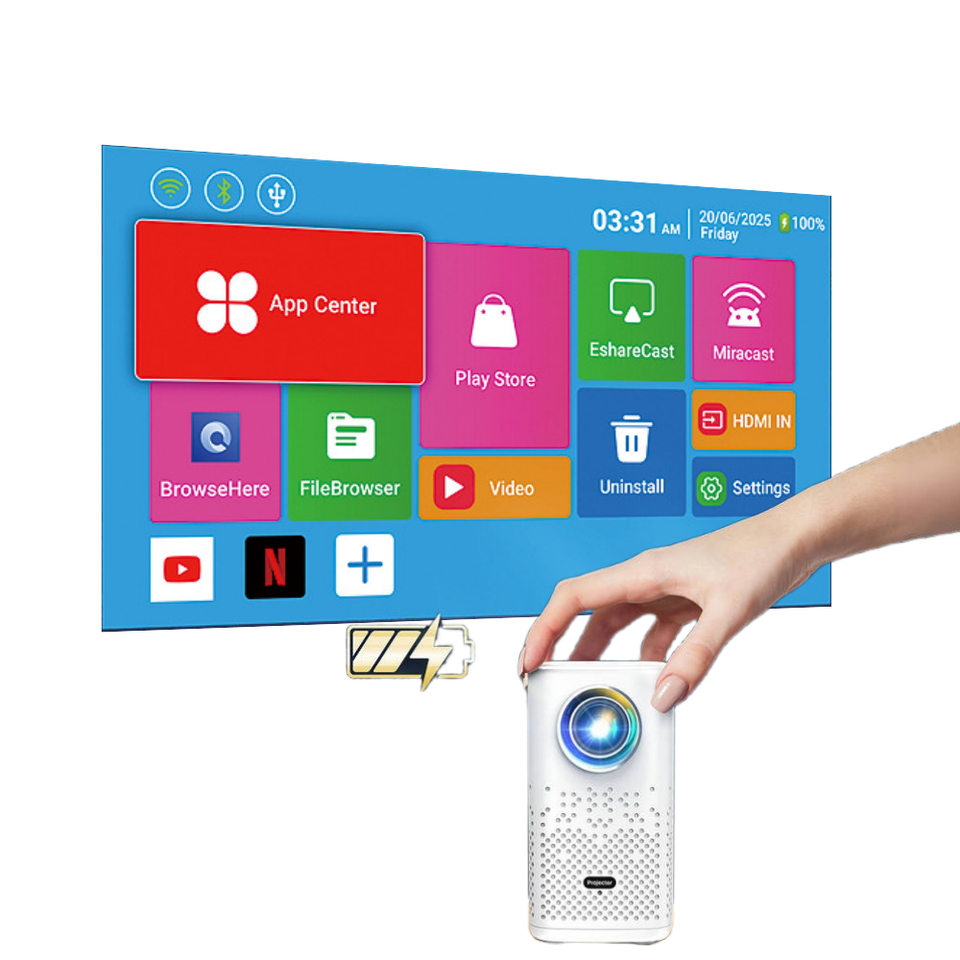 PICO, Internet Prêt, Haut-parleurs intégrés, HIFI STÉRÉO, Rechargeable, Android, Batterie intégrée