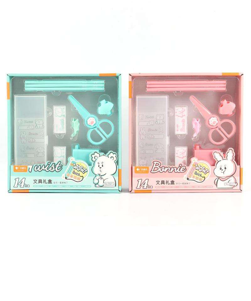 MiniFish Ensemble de 14 articles de papeterie pour jeunes apprenants, design de dessin animé coloré, fournitures scolaires primaires et cadeaux pour enfants, modèle 0021
