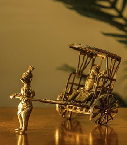 Tireur et chariot de pousse-pousse en laiton miniature. Scène charmante. Disponible aux prix de gros