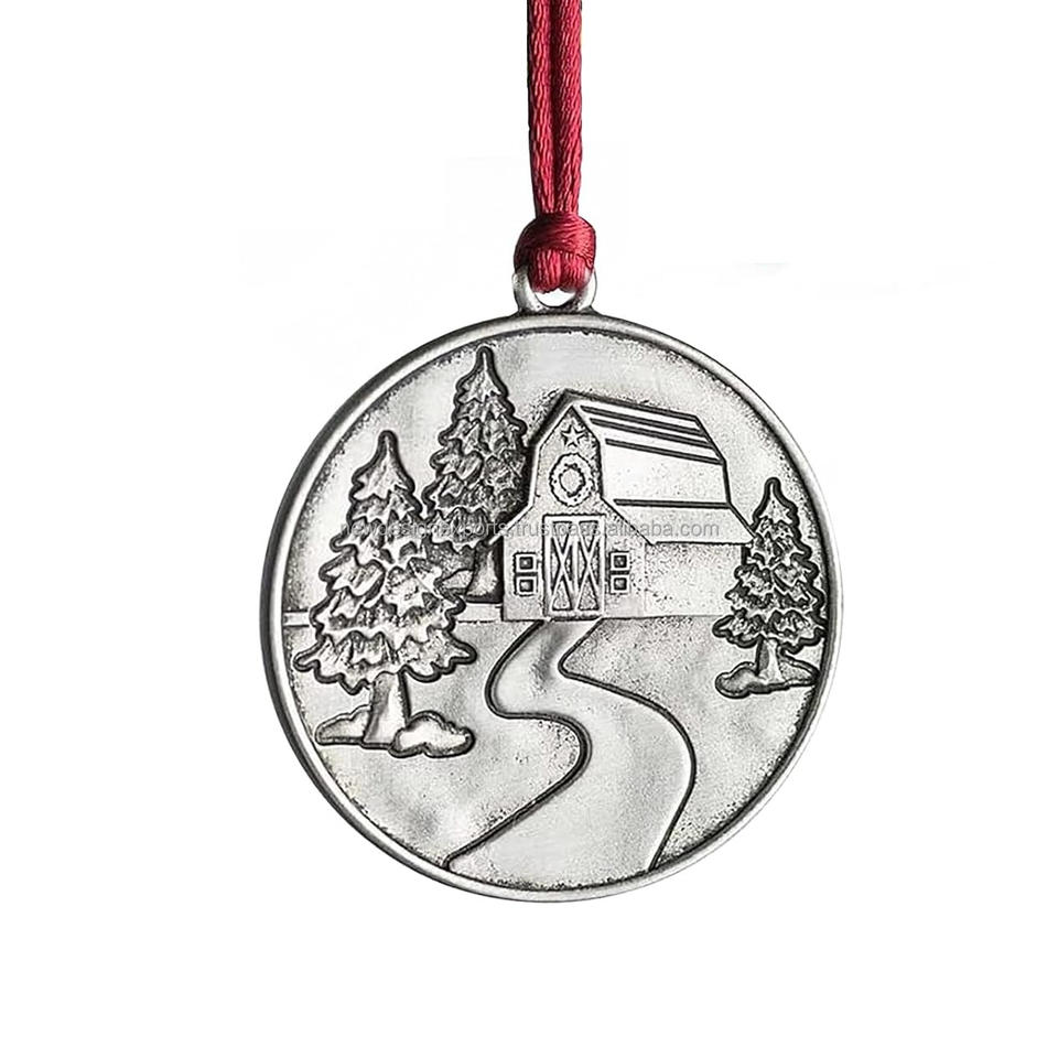 Grange de Noël miniature-Ornement suspendu en verre rustique imprimé UV de haute qualité fait à la main pour arbre