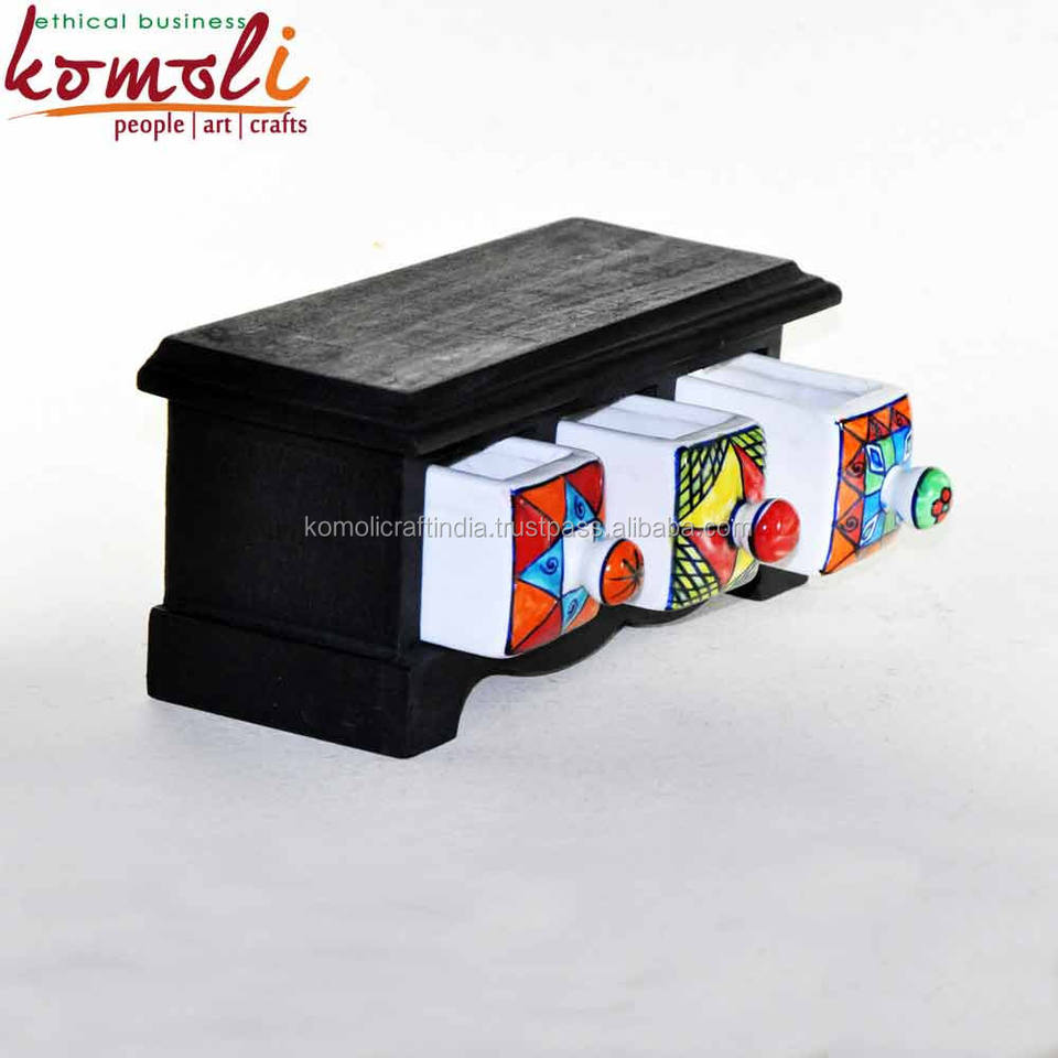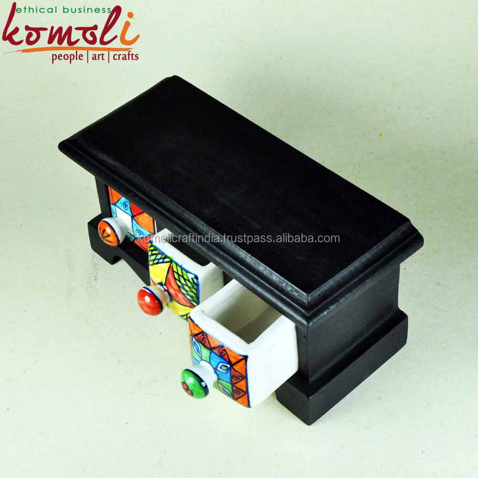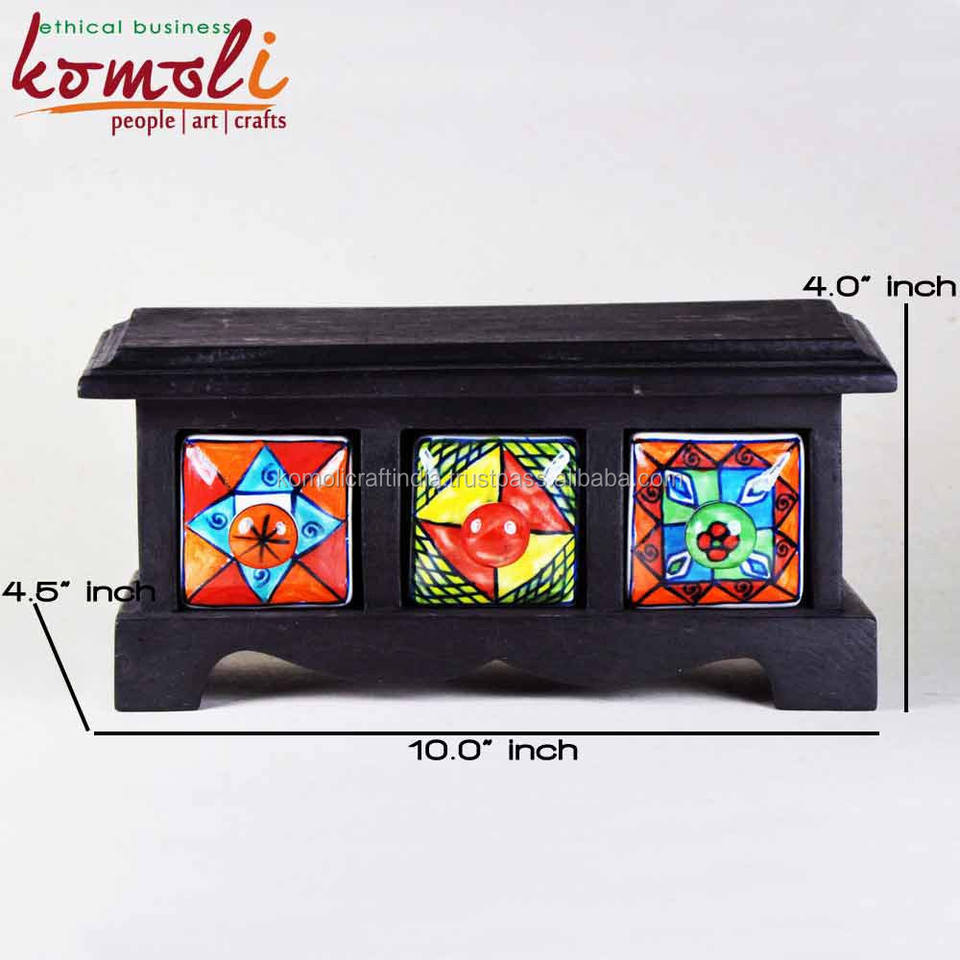 Boîte à bijoux Miniature, tiroirs en bois et en céramique, ensemble de poterie bleue, new,