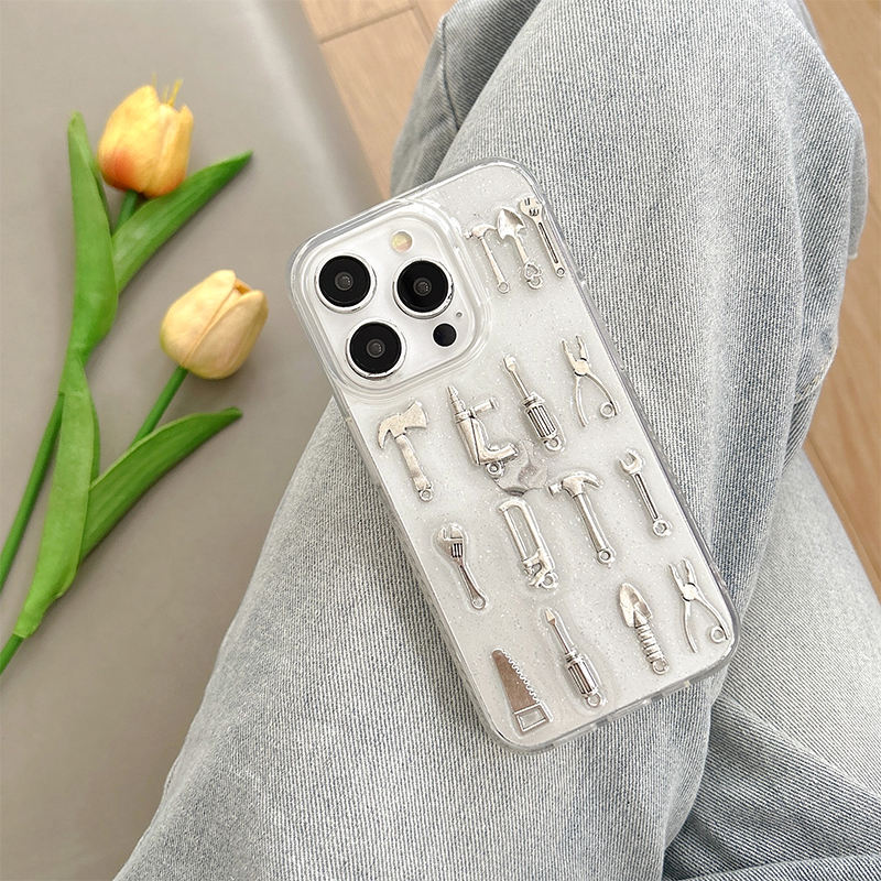 Ustensiles de cuisine miniatures, couteau et fourchette, étui de téléphone transparent antichoc tendance pour iPhone 16 Pro Max 15 Plus 14 13 12 11 17