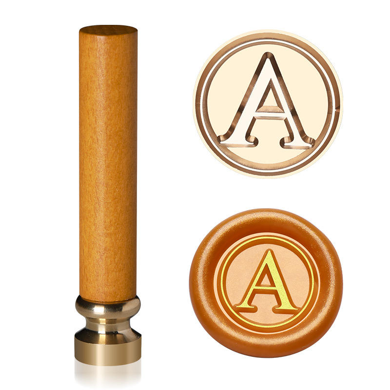 Miniature tampon standard à tête en cuivre, manche en bois de hêtre jaune, pour sceau de cire décoratif