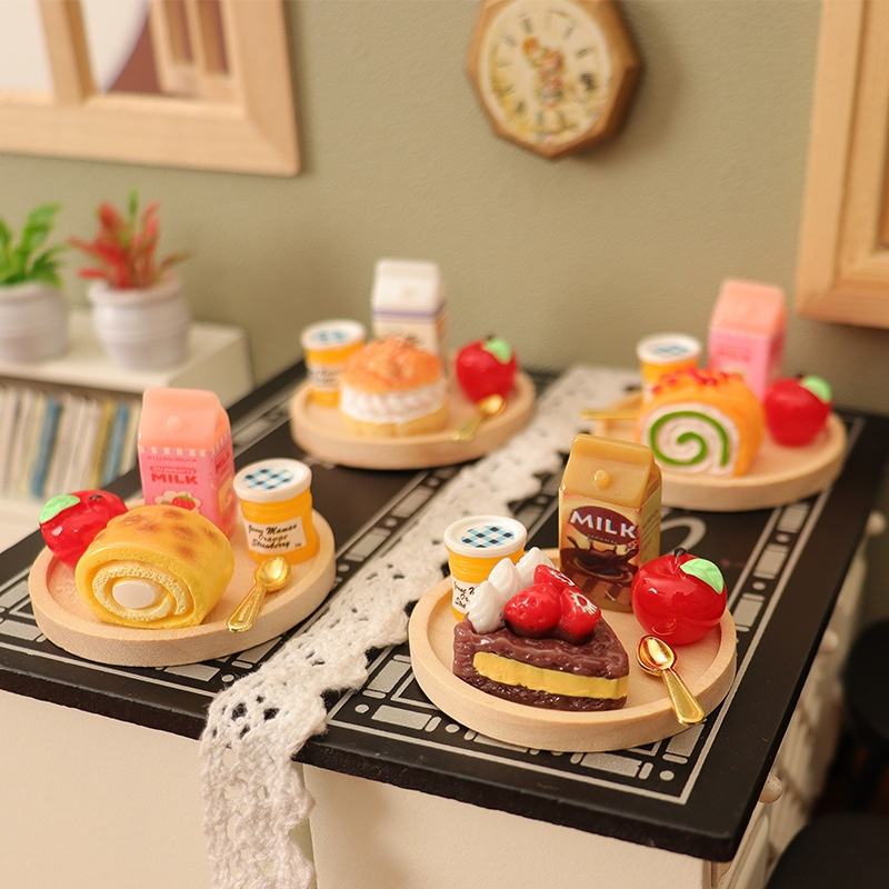 Miniature for Swiss Cake Jam Milk Wooden Tray Mini Simulation Food Play Afternoon Tea Dessert Small Ornaments Christmas