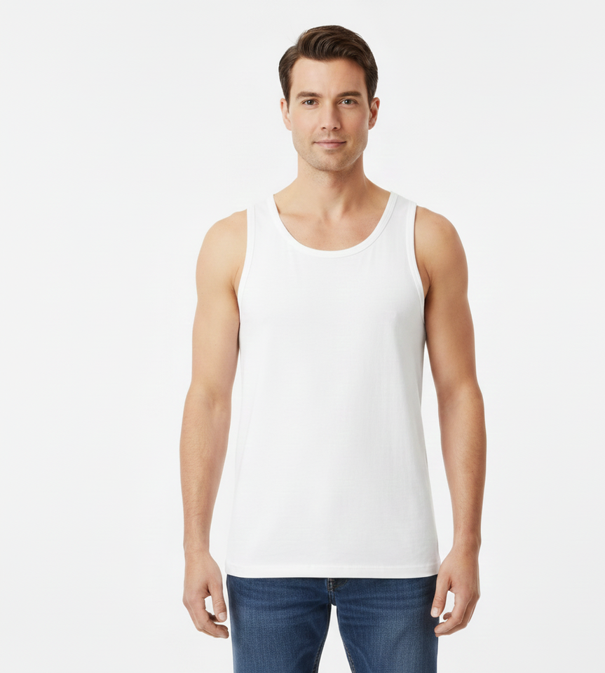 Minimal Appeal White Cotton Vest for Men Crafted with Sleeveless Breathable Fabric Lightweight Stretch Comfort for Daily Use