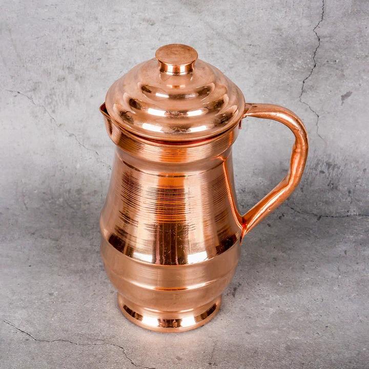 Carafe à eau en cuivre au design minimaliste, idéale pour le service en cuisine, la consommation domestique régulière et l'accueil des invités, vente en gros depuis l'Inde
