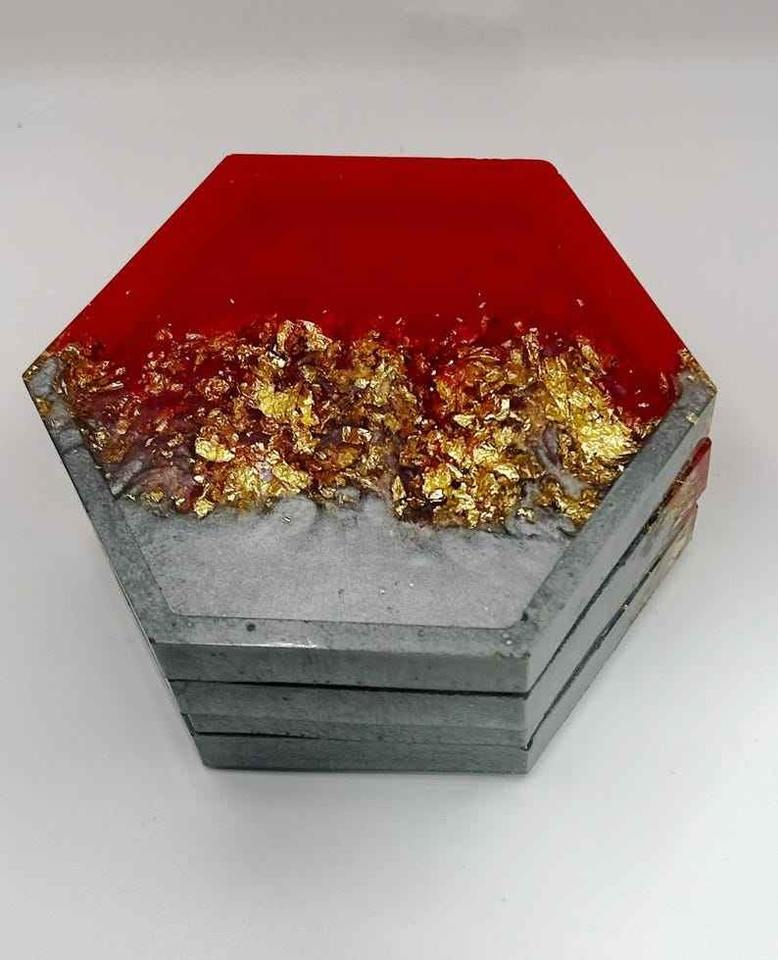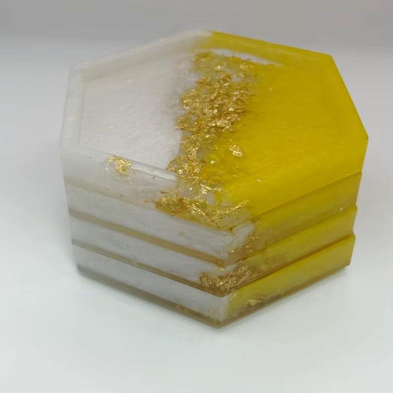Ensemble de sous-verres à thé et à café en résine époxy faits à la main avec support | Style de table moderne carré et rond