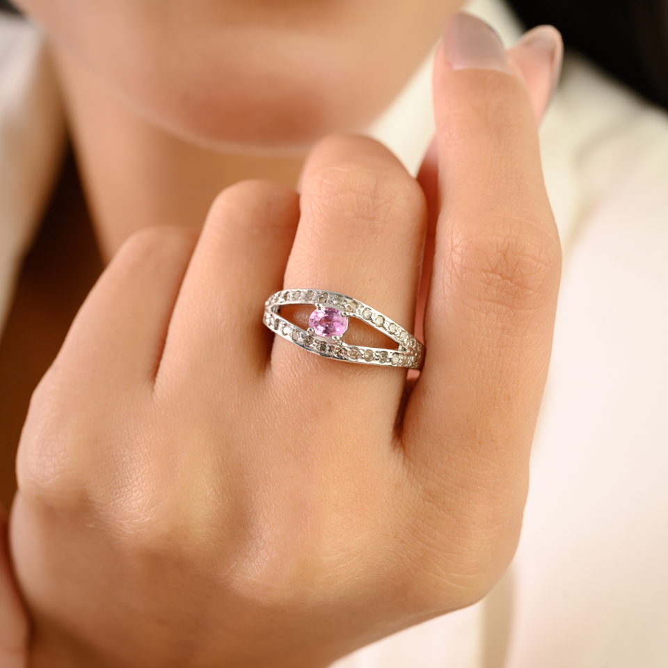Bague solitaire minimaliste en argent massif 925 avec saphir rose et diamant pour femme, idéale pour le quotidien, bijoux raffinés