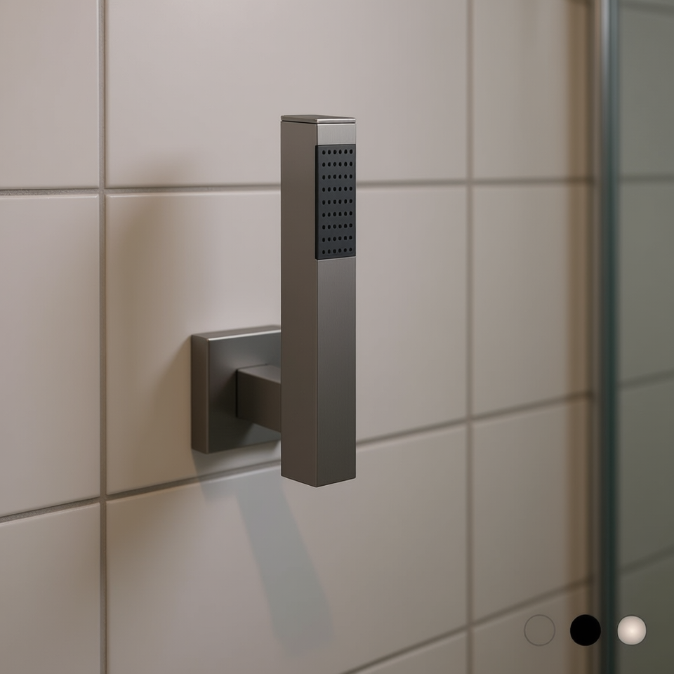 Poignée de douche carrée minimaliste en nickel brossé mat, longueur 0 cm