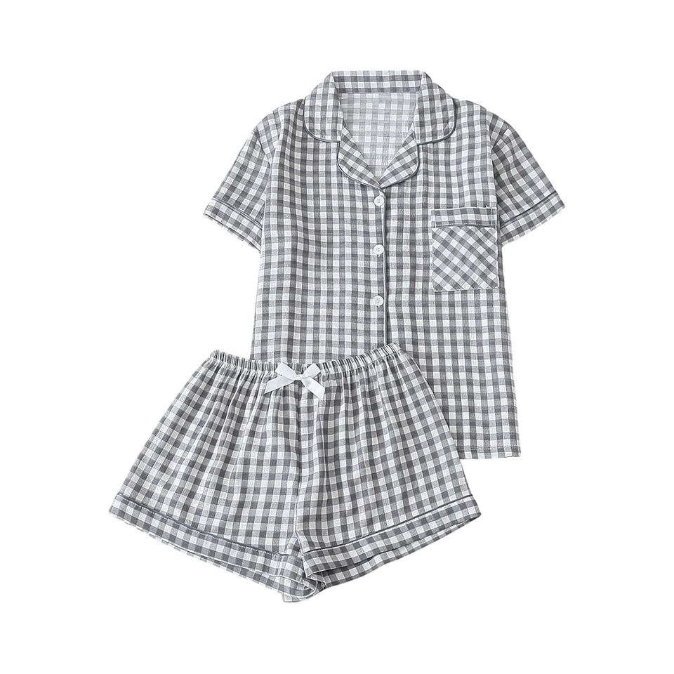 Minimal Stripe Sleep Set Button-Front Shorts And V-Neck Top 100% Cotton For Women Subtle Pattern And Effortless Essential