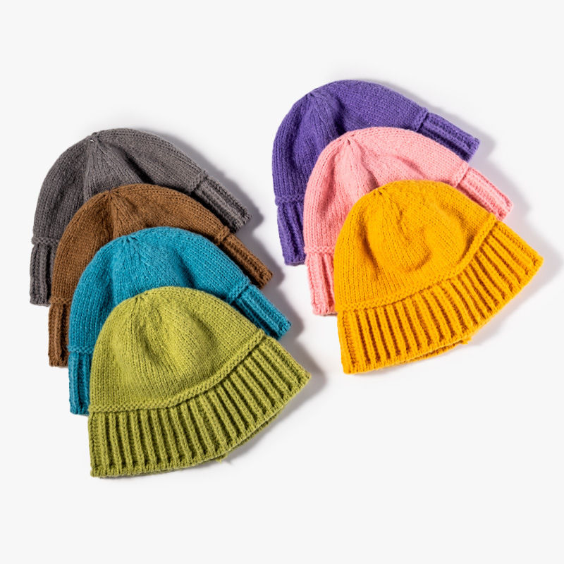 Minimal knitted beanie hat warm soft cozy fleece lined skull cap stretchy fit stylish outdoor cold weather headwear for clean
