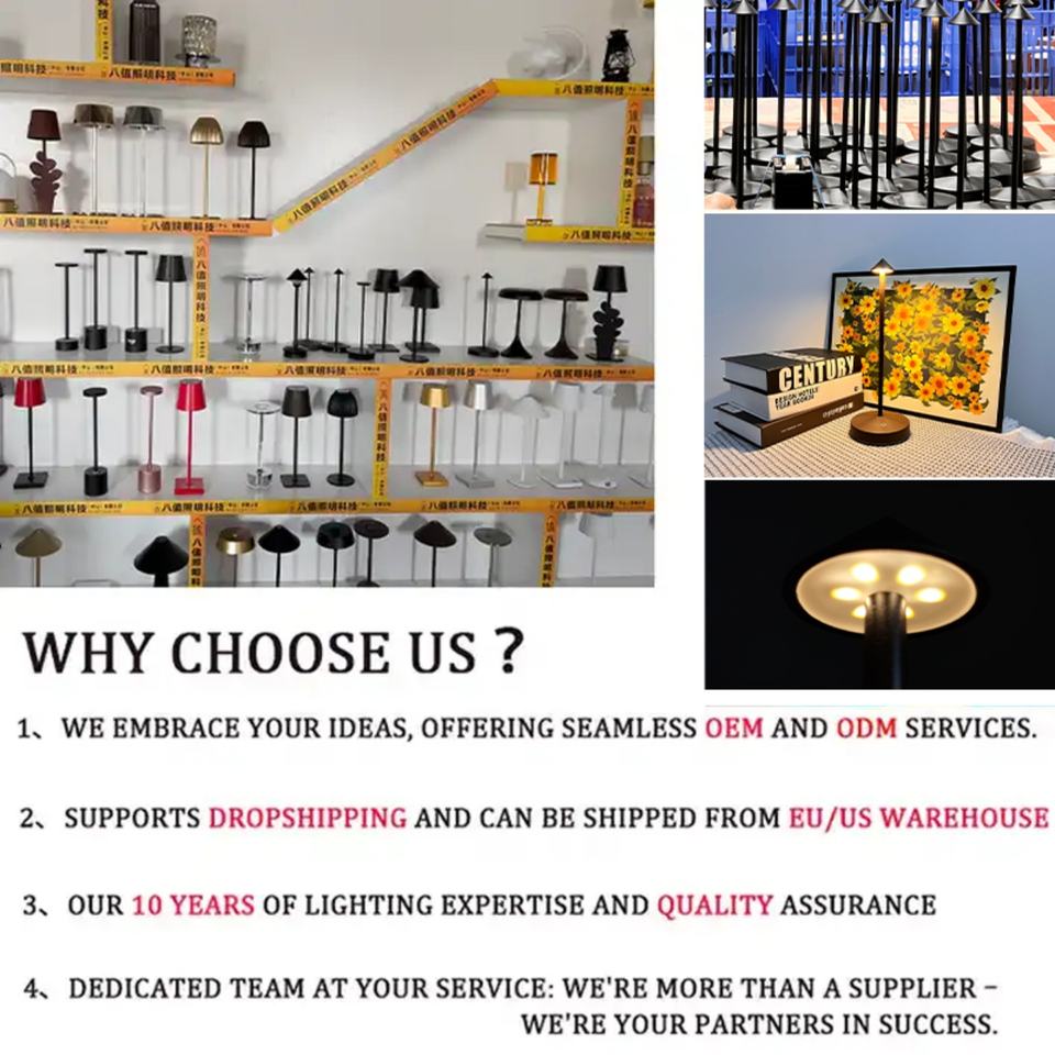 Lampe de table LED portable sans fil rechargeable Pina Pro Coffee, style minimaliste et personnalisable, pour restaurant