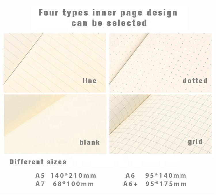 Conception minimaliste bloc-notes cousu couverture souple personnalisée grille pointillé étudiant exercice écriture cahiers en cuir PU