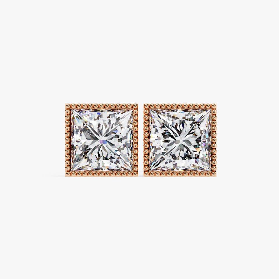 Boucles d'oreilles minimalistes en diamant de laboratoire taille princesse 1 carat, or rose 14K, serti clos, solitaire carré, pour fiançailles et mariage, IGI