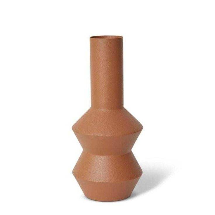 Vase Géométrique Abstrait Minimaliste en Fer Texturé Orange Rouillé – Pot de Fleurs d'Art Contemporain pour Bureau, Mariage, Maison