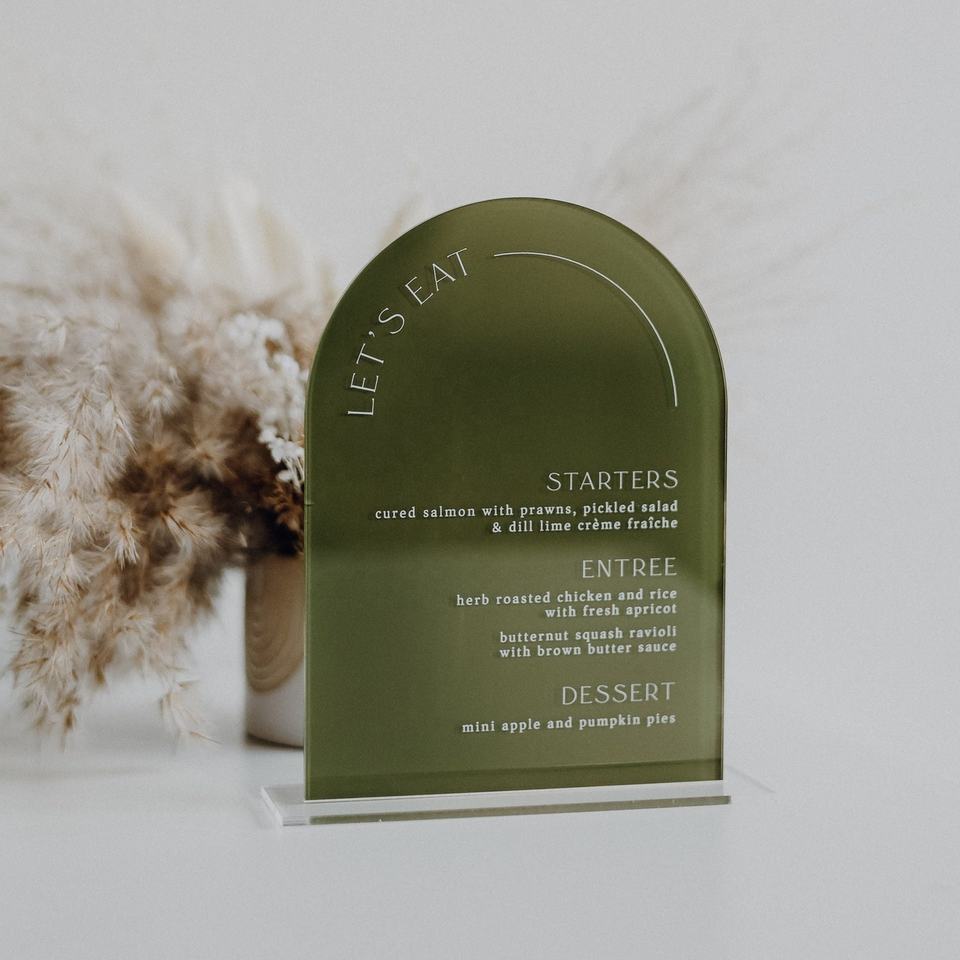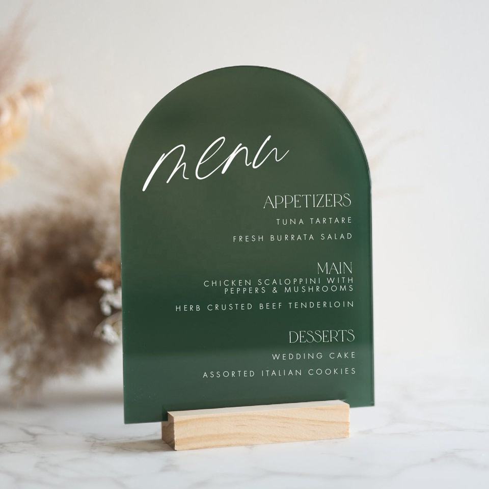 Panneau d'arche de menu en acrylique minimaliste Personnaliser le panneau de menu de mariage pour tables avec base