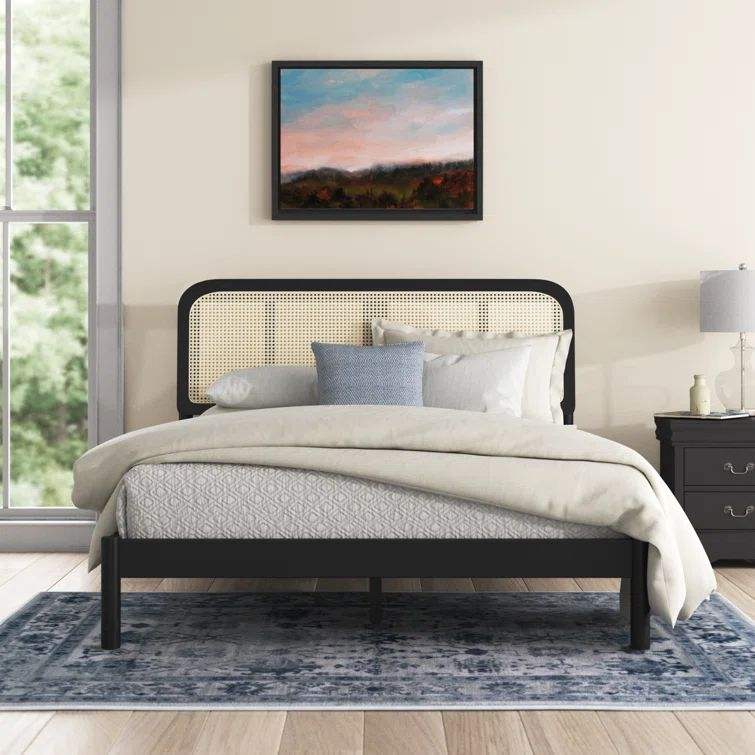Cadre de lit noir minimaliste avec tête de lit en rotin Mobilier design Table de chevet en bois bois massif de haute qualité