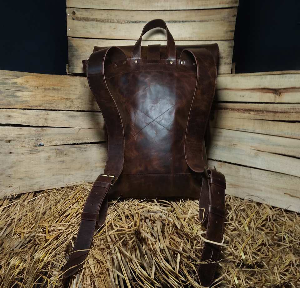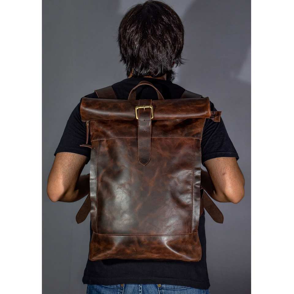 Minimalist Brown Leather Roll Top Backpack Genuine Cowhide Rucksack Mens Office Bag for Daily Commuting LTBP-0034