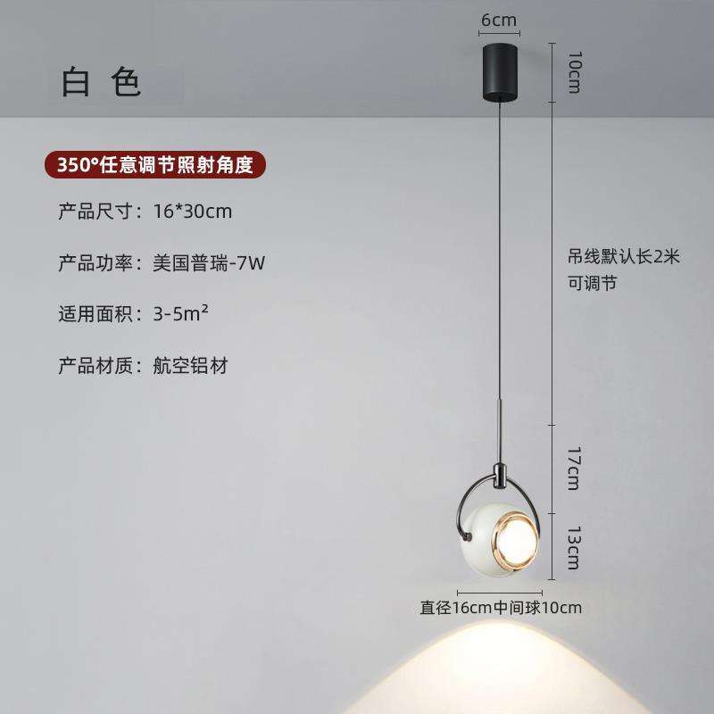 Lampe suspendue minimaliste COB rotative, réglable en hauteur, pour chambre à coucher, salon, mur d'arrière-plan ou bar - Corps de lampe en aluminium