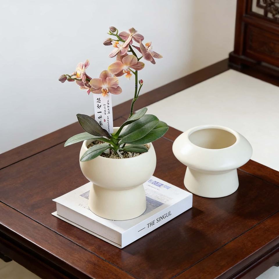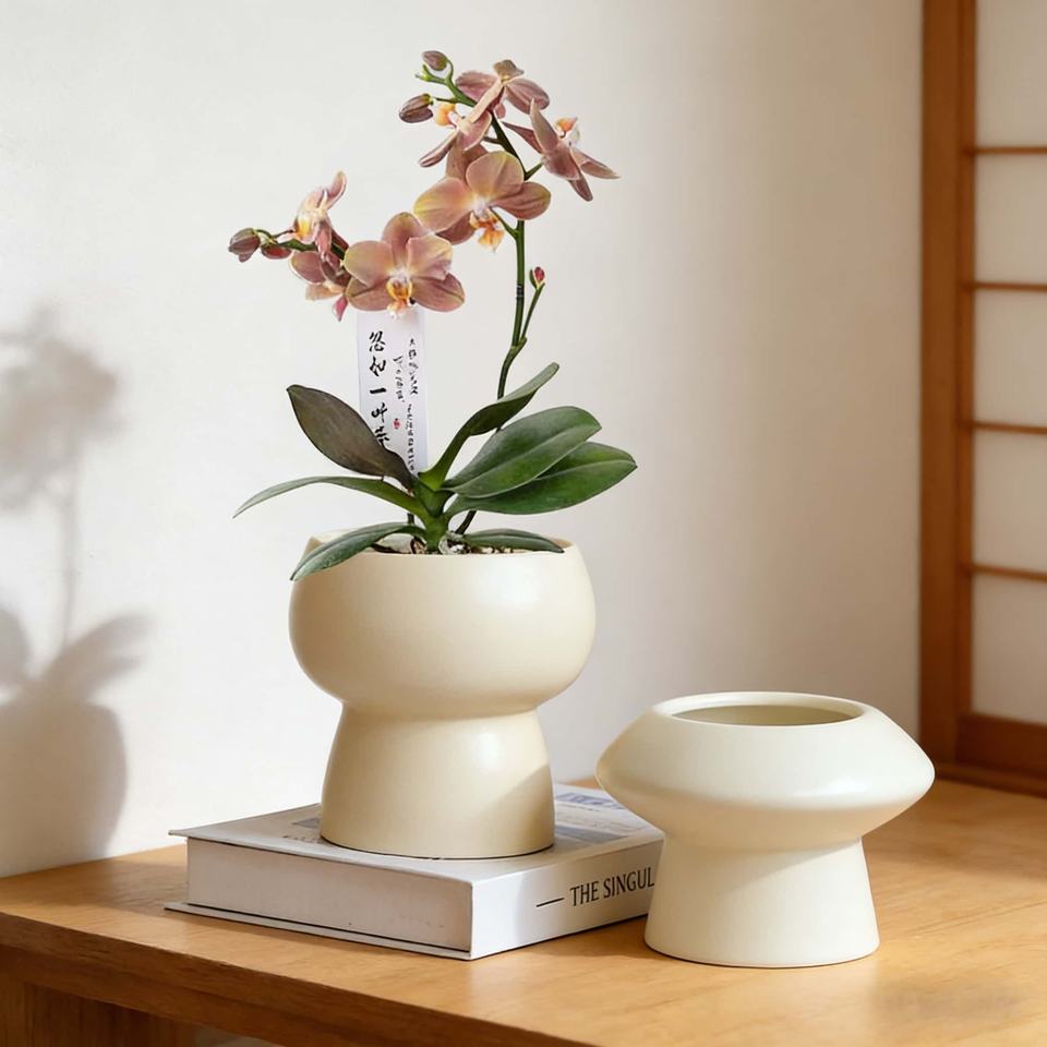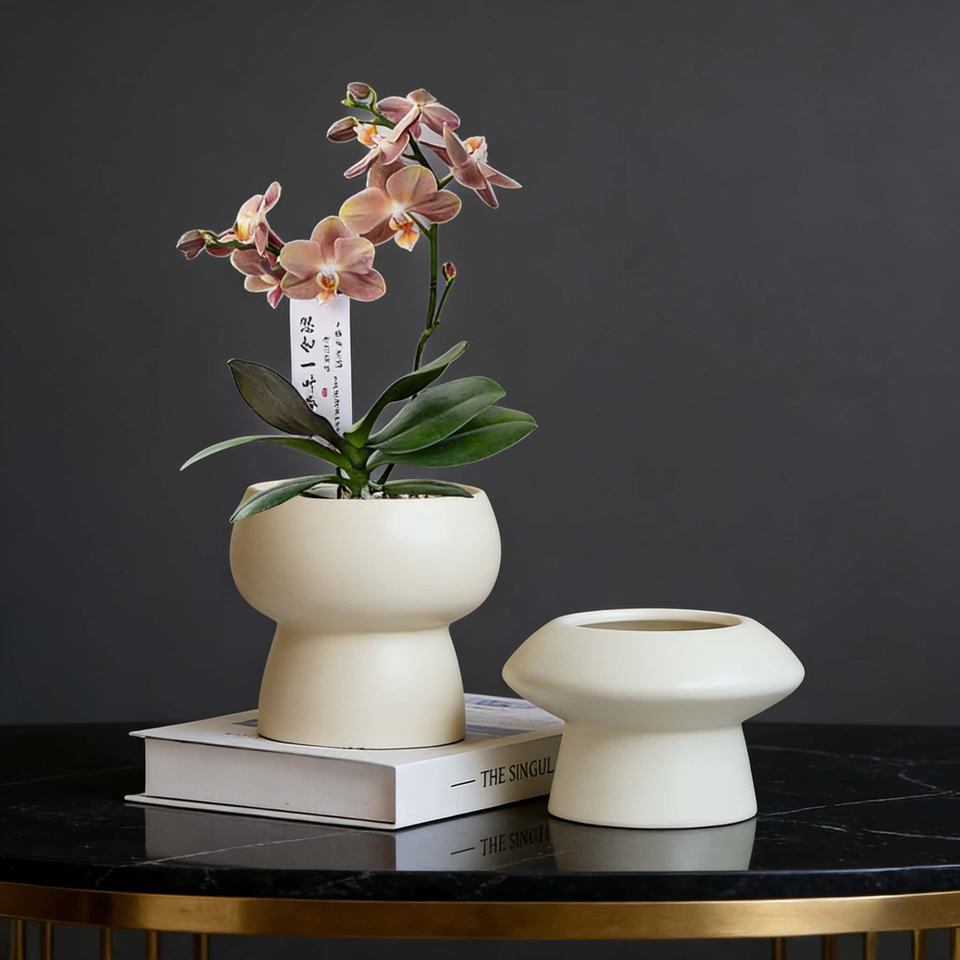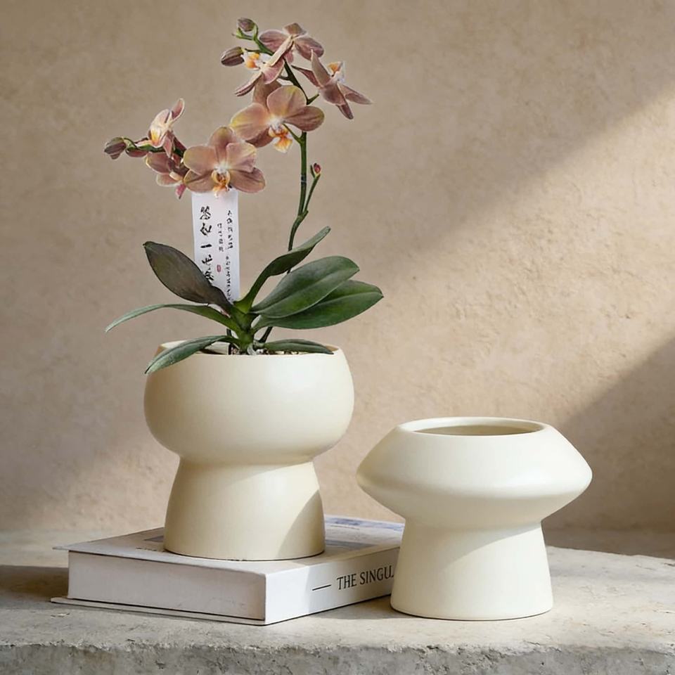Pots à fleurs en céramique minimalistes, écologiques, légers, pour usage domestique, texture crémeuse, luxe pour orchidées, succulentes, bonsaïs