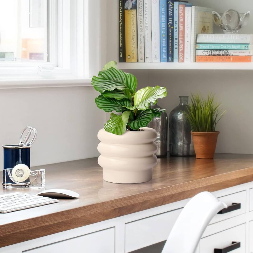 Ensemble de pots à plantes en céramique minimaliste avec motif noir moderne, porte-plantes succulentes décoratif d'intérieur durable