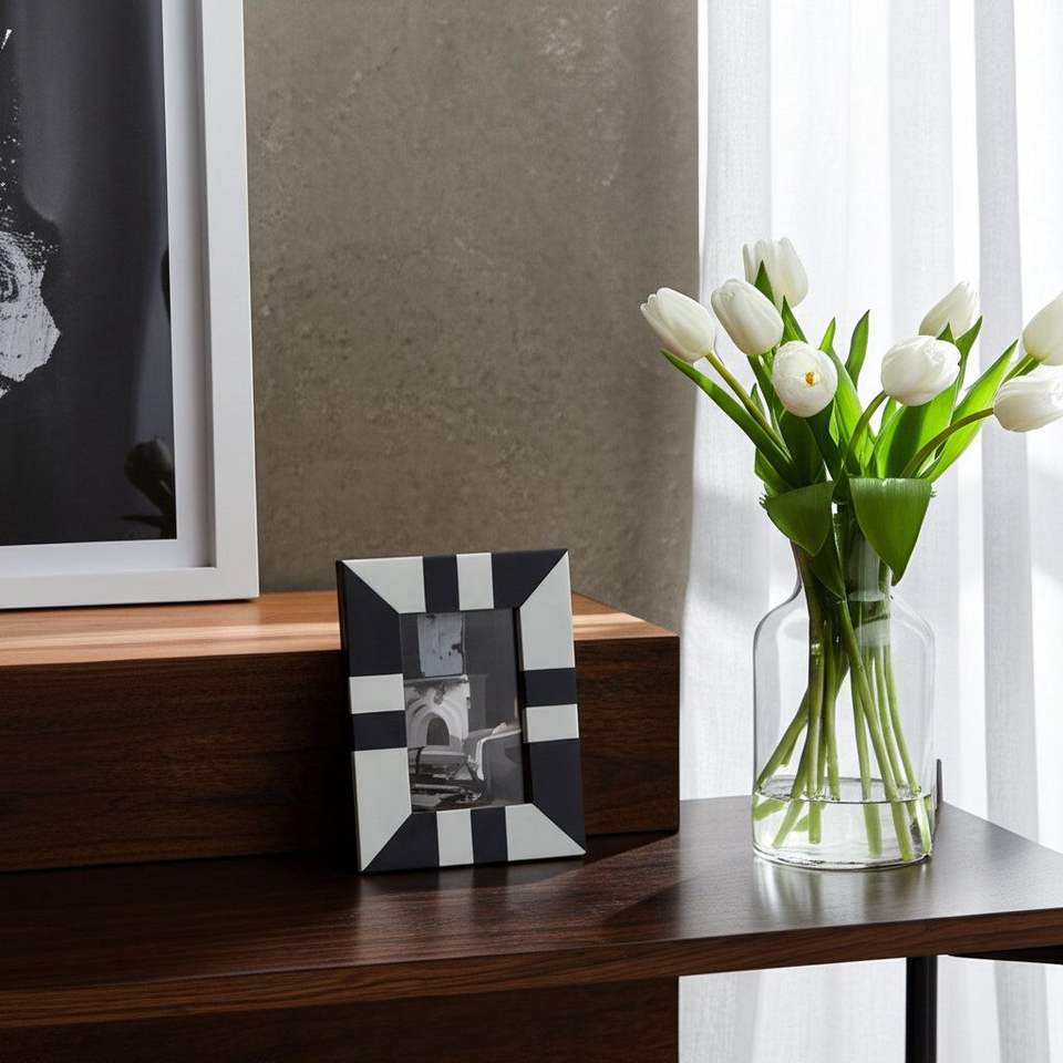 Cadre photo minimaliste en résine côtelée, fait main, à suspendre verticalement au mur
