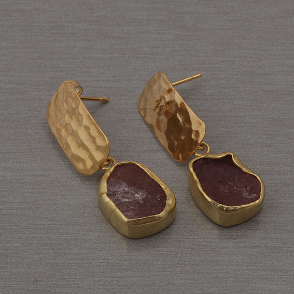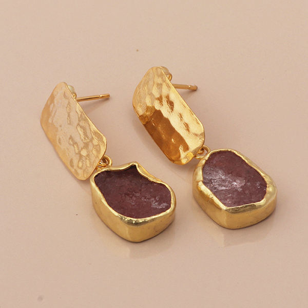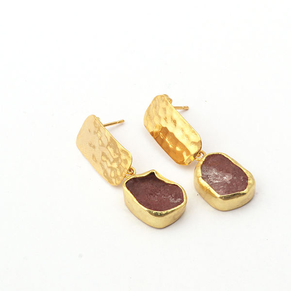 Boucles d'oreilles pendantes en pierre de naissance minimaliste faites à la main Style goutte de Quartz fraise brute fabrication de bijoux à bricoler soi-même composant en gros Lot-laiton