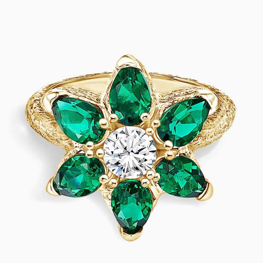 Émeraude et diamant cultivés en laboratoirePierre principale