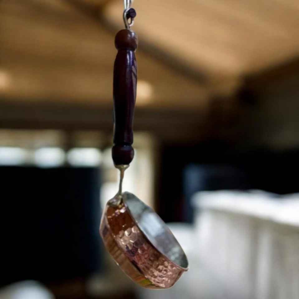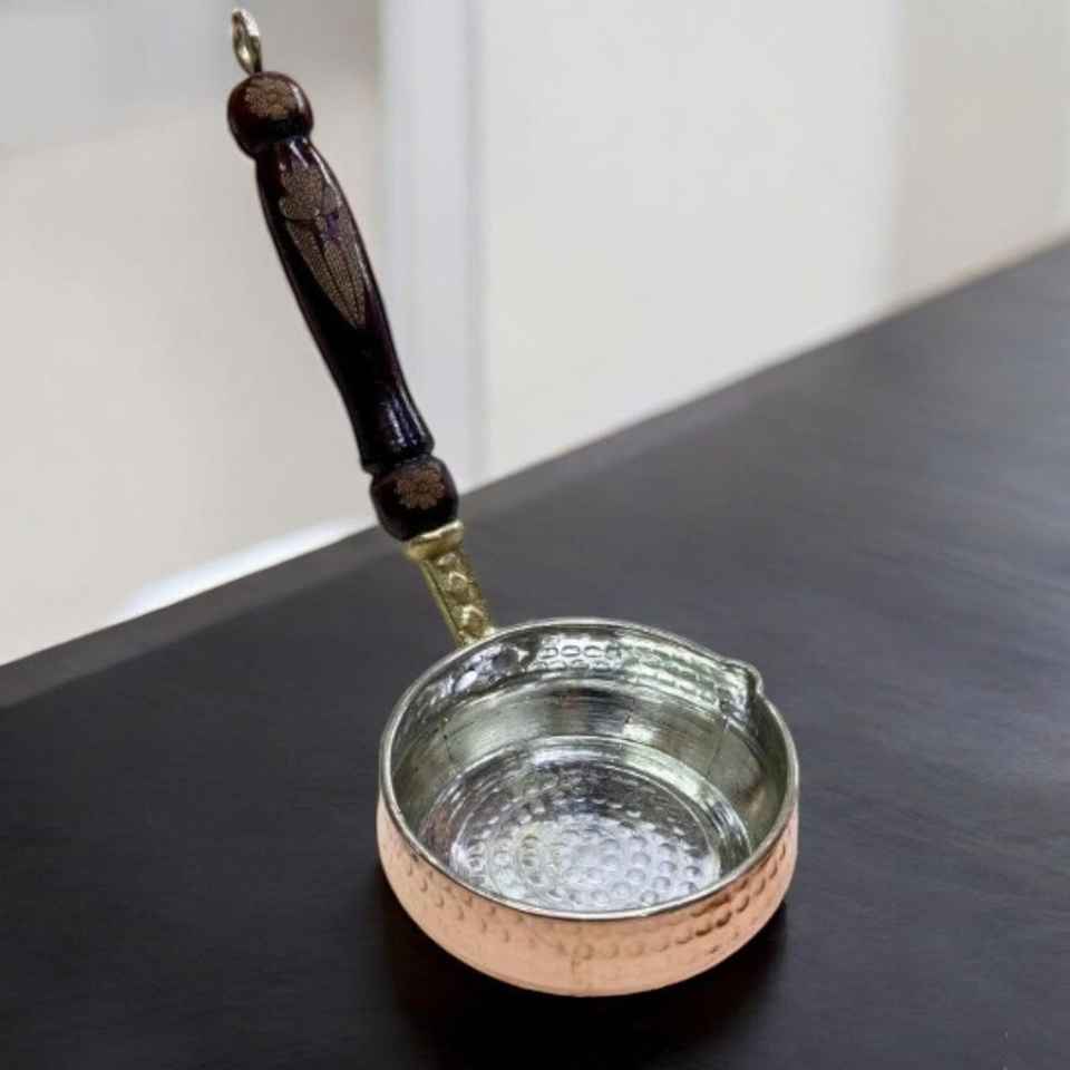 Minimalist Design Metal Sauce Pan With Hammered Design And Wood Handle For Kitchenware Hotel Restaurant Rose Gold Copper Utensil