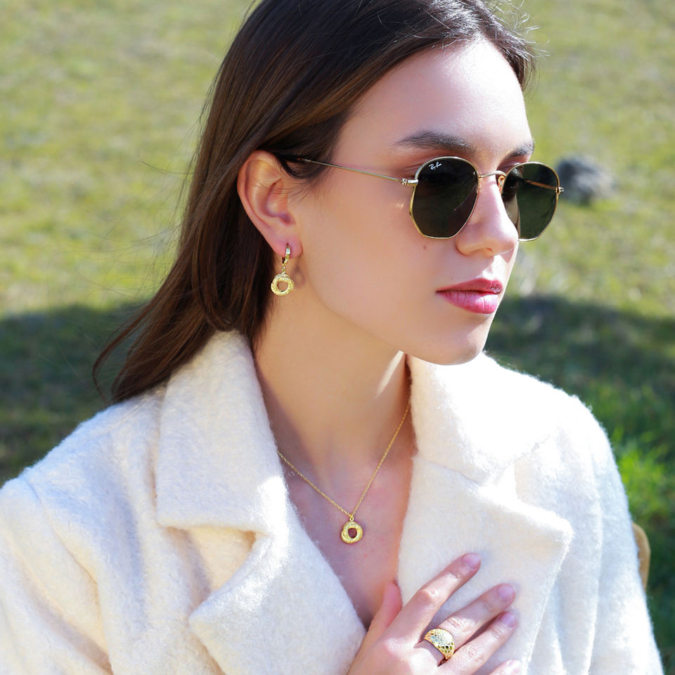 Boucles d'oreilles en forme ronde texturées, Design minimaliste, bijoux turcs en argent Sterling 925