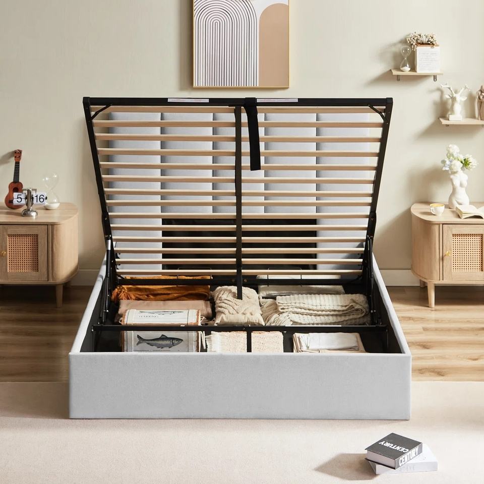 Minimalist Design Upholstered Bed Frame with Large Storage Space Soft Comfortable Bed with Adjustable Lift Bar Space Saving