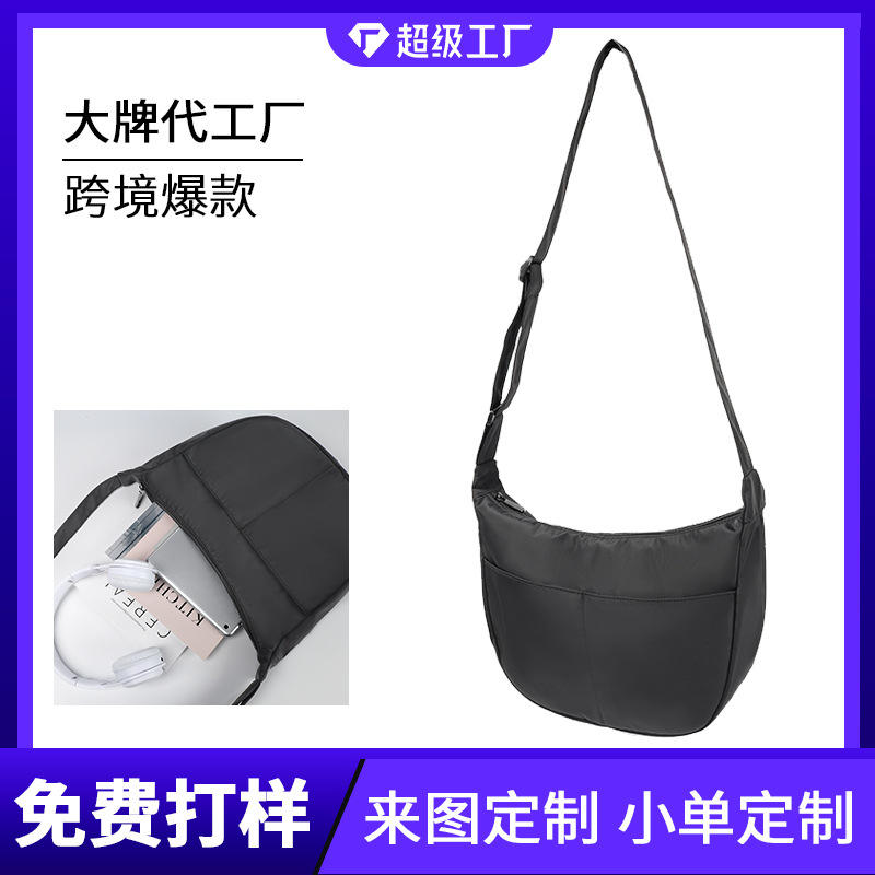 Sac bandoulière minimaliste de type dumpling avec fermeture éclair pour usage quotidien, collection Printemps 2024, style noir et blanc tendance
