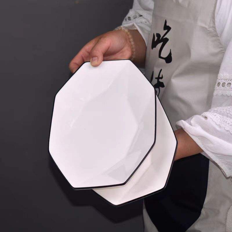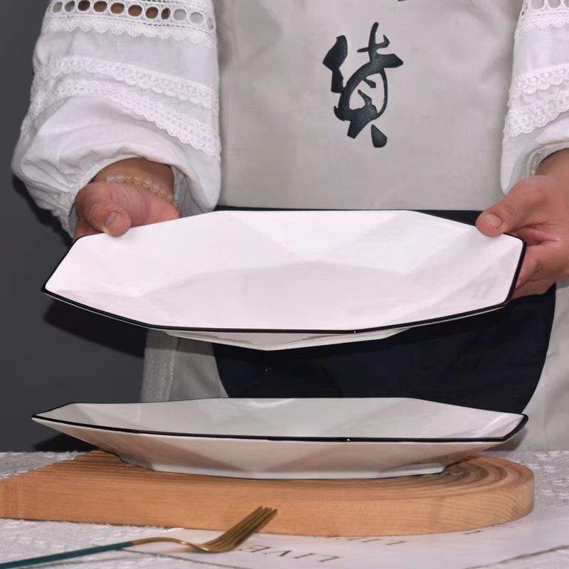 Vaisselle en céramique européenne minimaliste personnalisée de 12 pouces assiette de poisson diamant de lys blanc pur grande assiette à sushi motif végétal