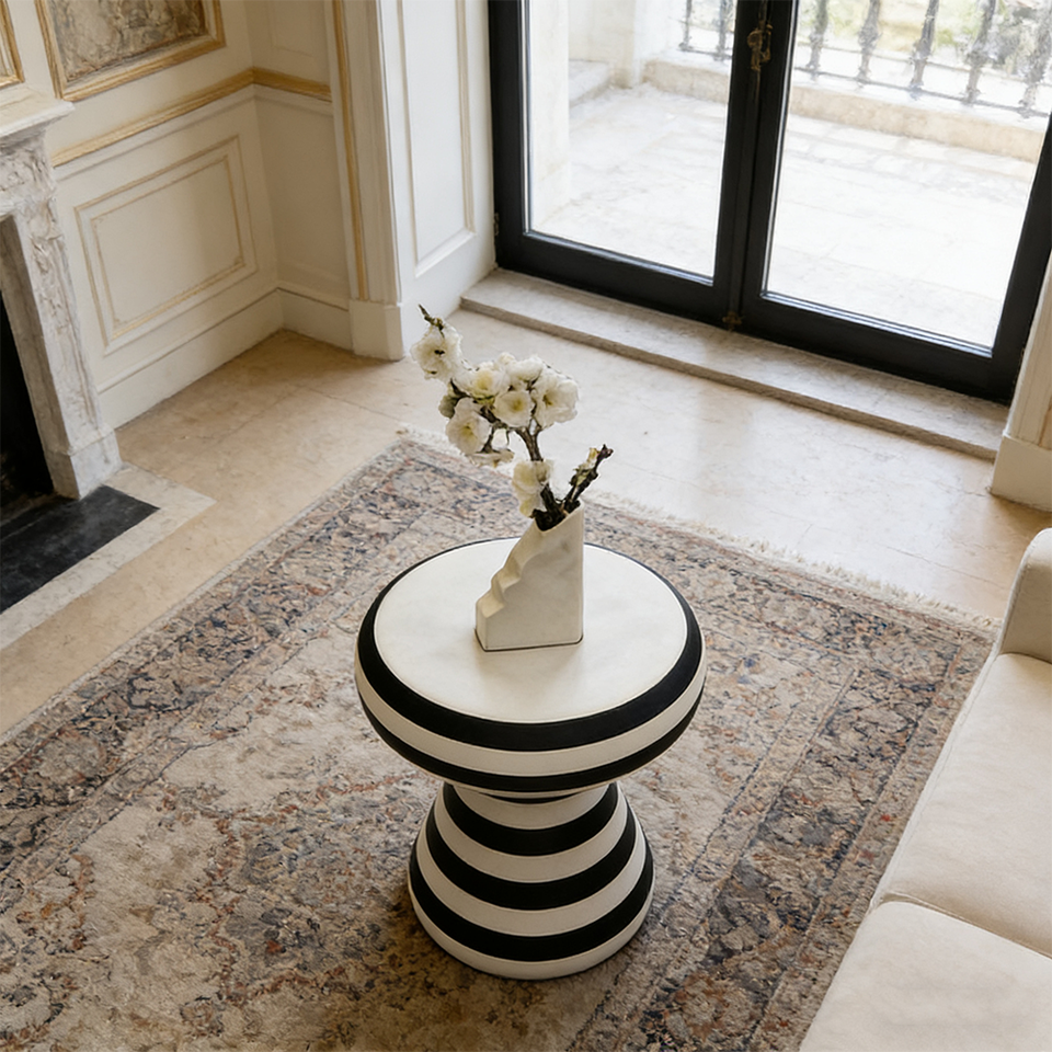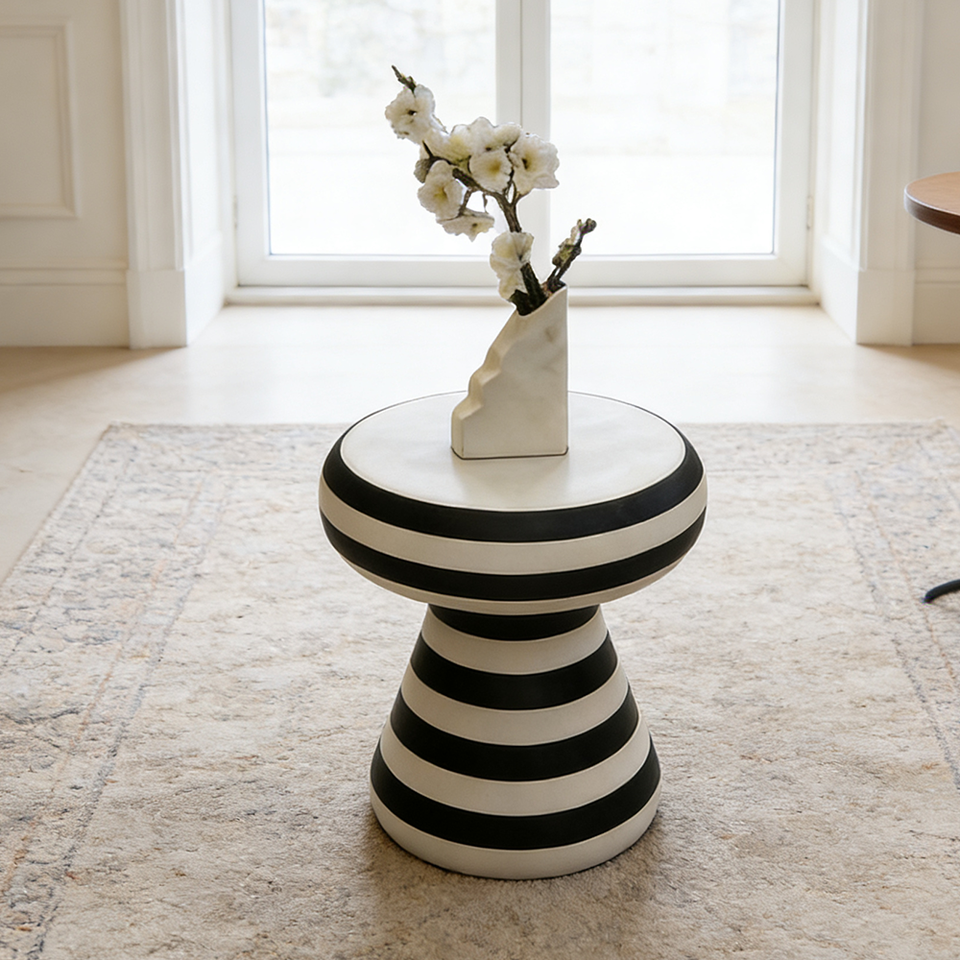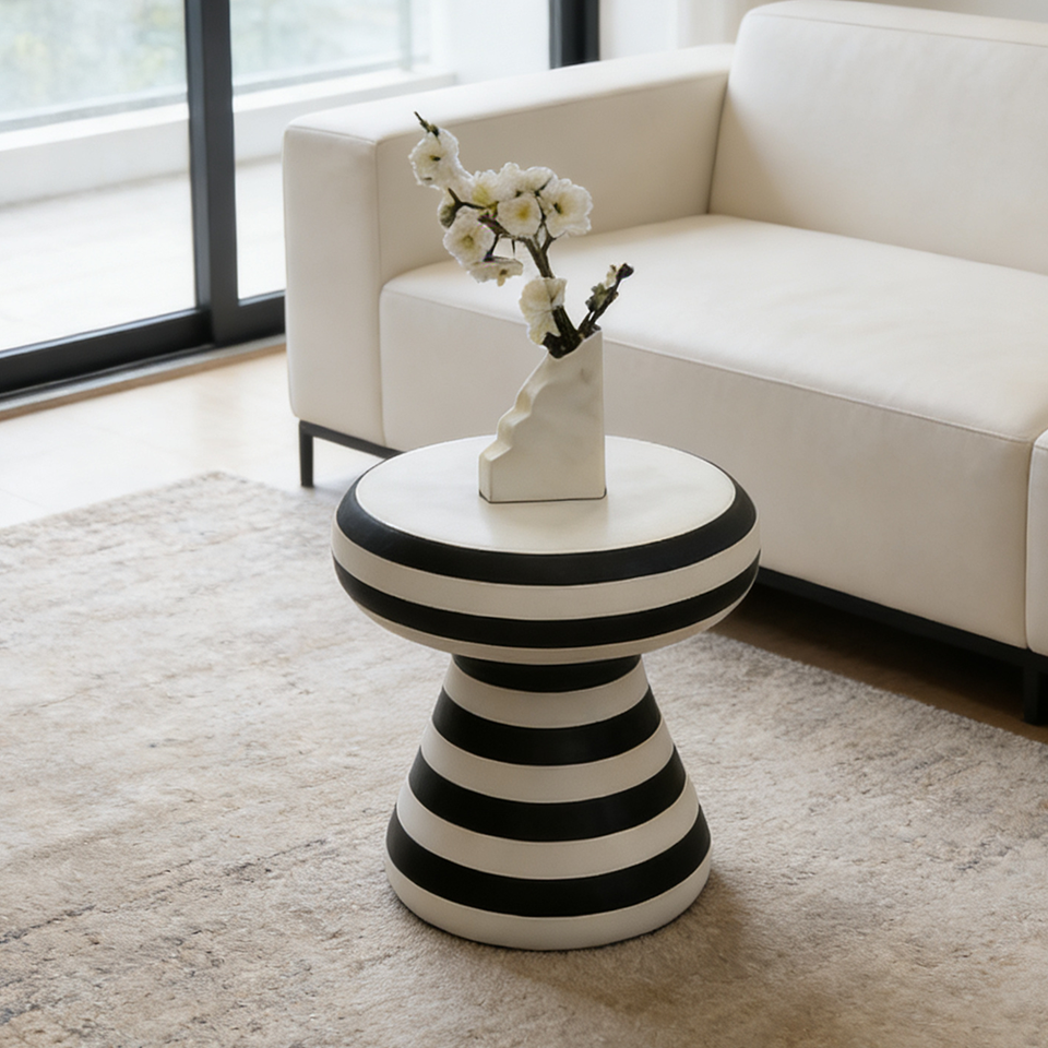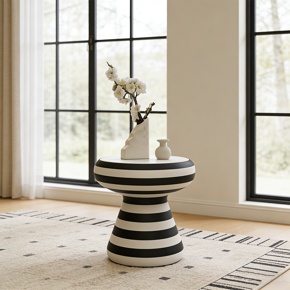 Table basse ronde minimaliste en FRP, table d'appoint unique à rayures zébrées, meubles durables pour le salon