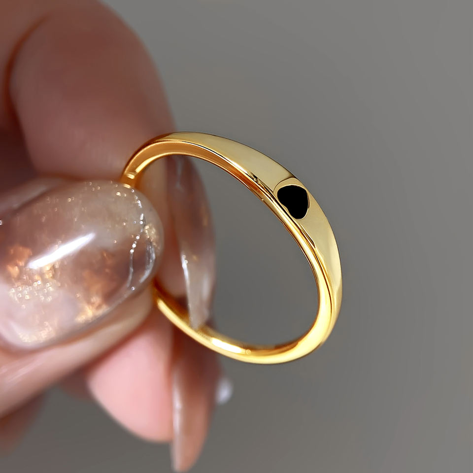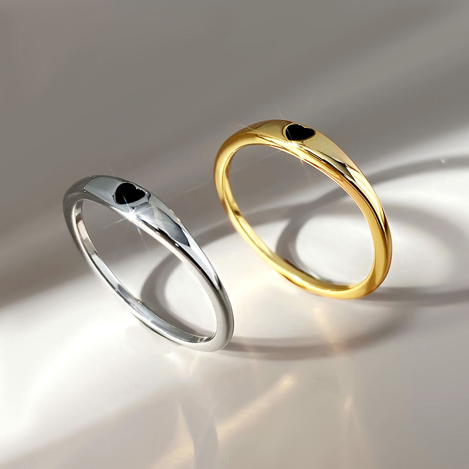 Bague Minimaliste en Or Plaqué 18K avec Cœur Noir Émaillé pour Femme – Idée Cadeau