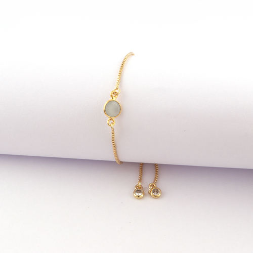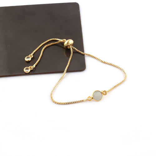 Minimaliste gris calcédoine CZ fait à la main Bracelet réglable nouvelle mode plaqué or boîte chaîne curseur serrure avec diamant pour cadeau
