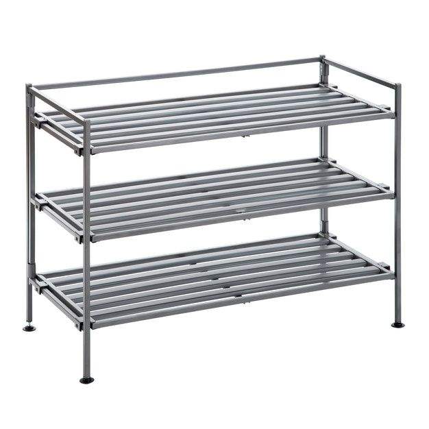 Organisateur de chaussures minimaliste en fer avec des lignes épurées, parfait pour les maisons contemporaines et une gestion efficace de l'espace