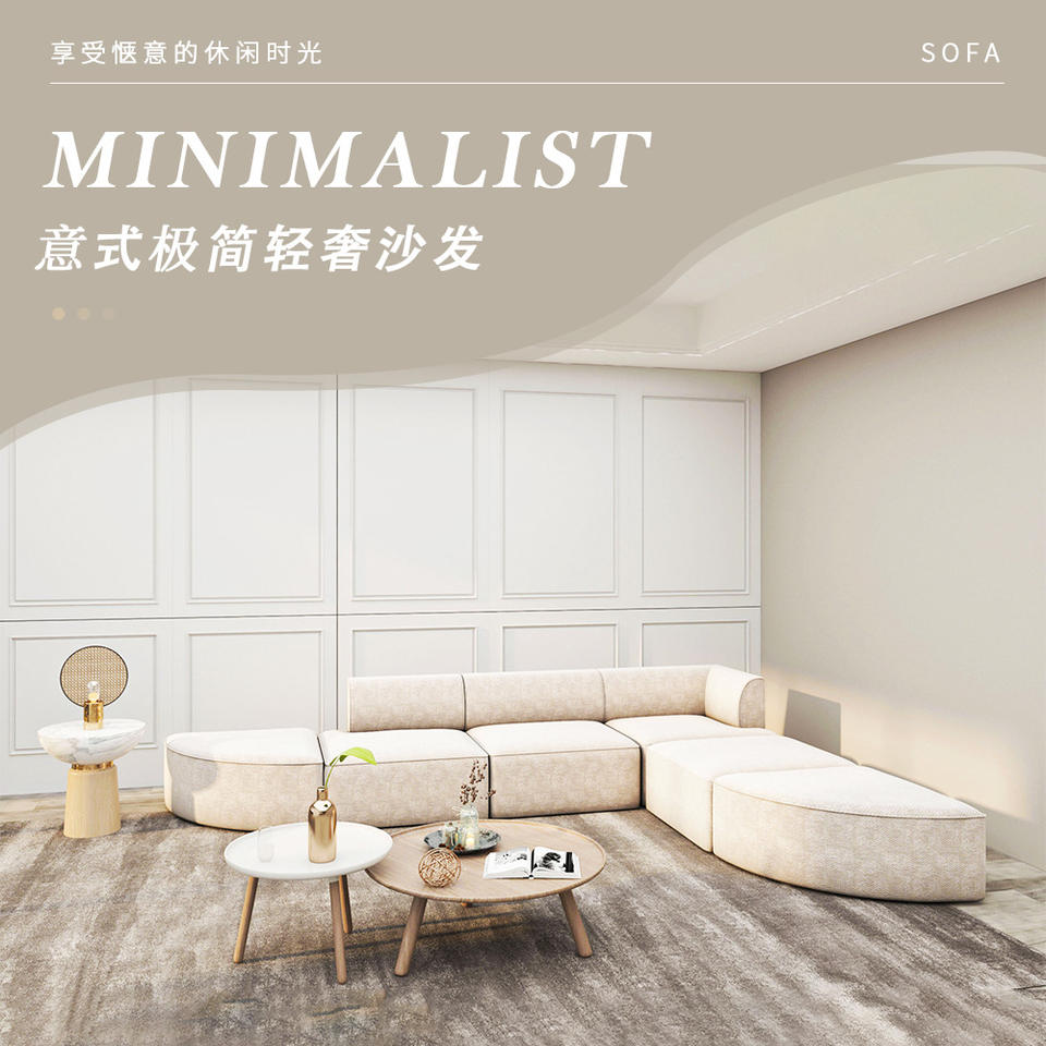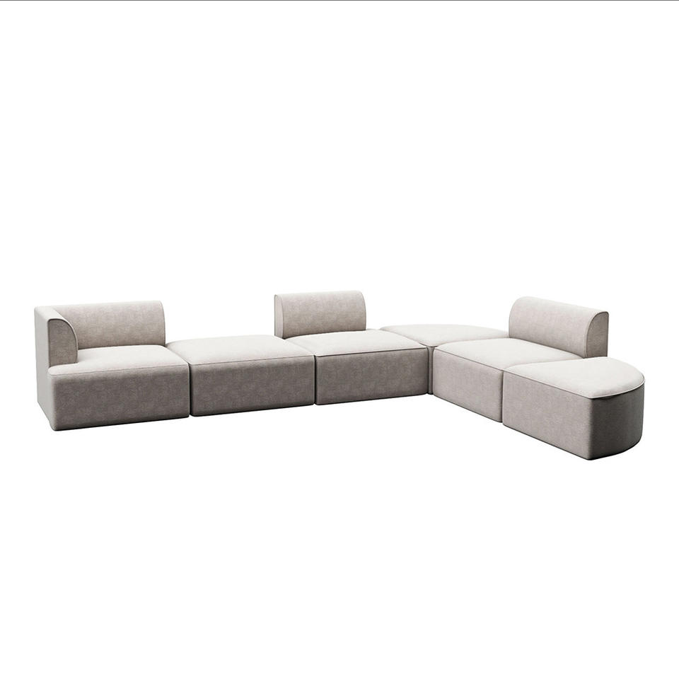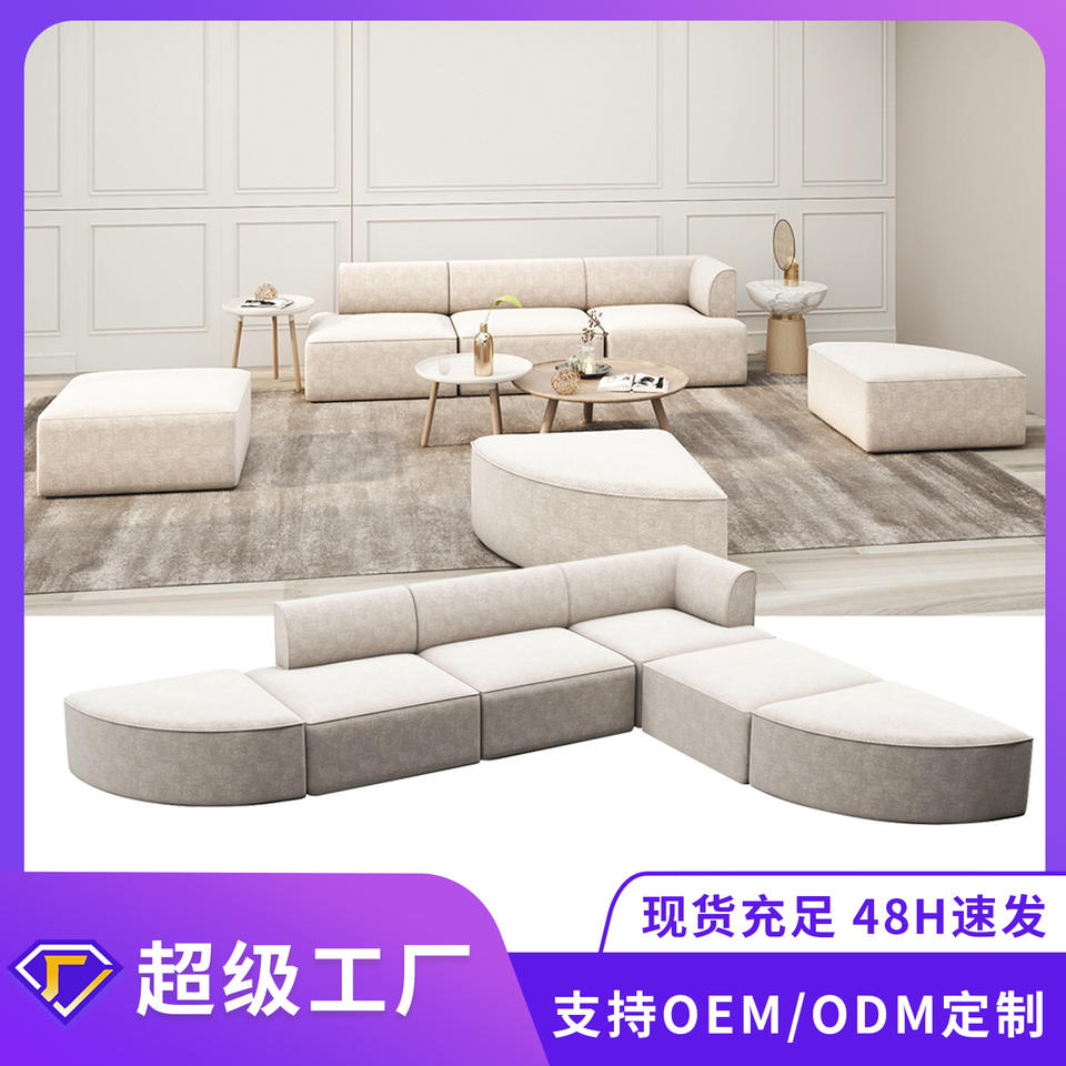 Canapé modulaire en forme de L minimaliste, tissu en lin blanc cassé, rembourrage en éponge, canapé de salon