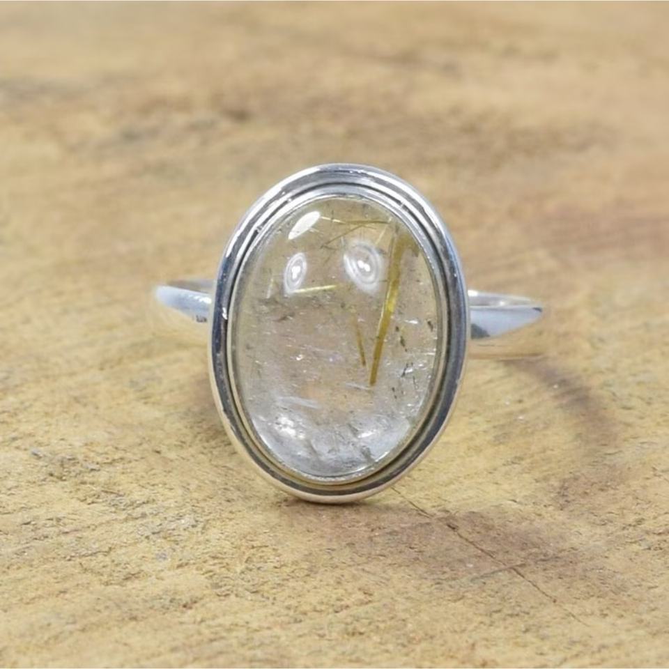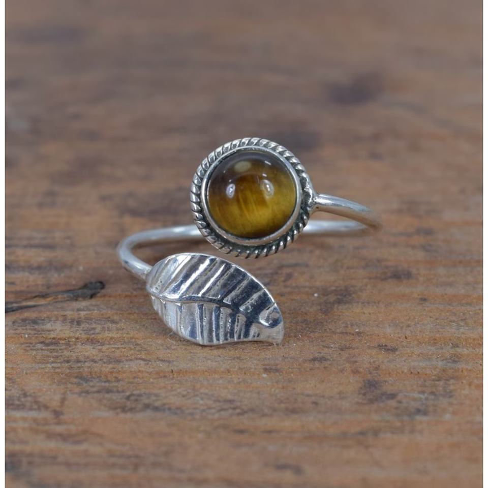 Bijoux Studio RR30 Minimaliste Feuille Anneaux 925 Sterling Silver Tiger Eye Gemstone Fine Silver Christian Indian Jewelry Bezel Set