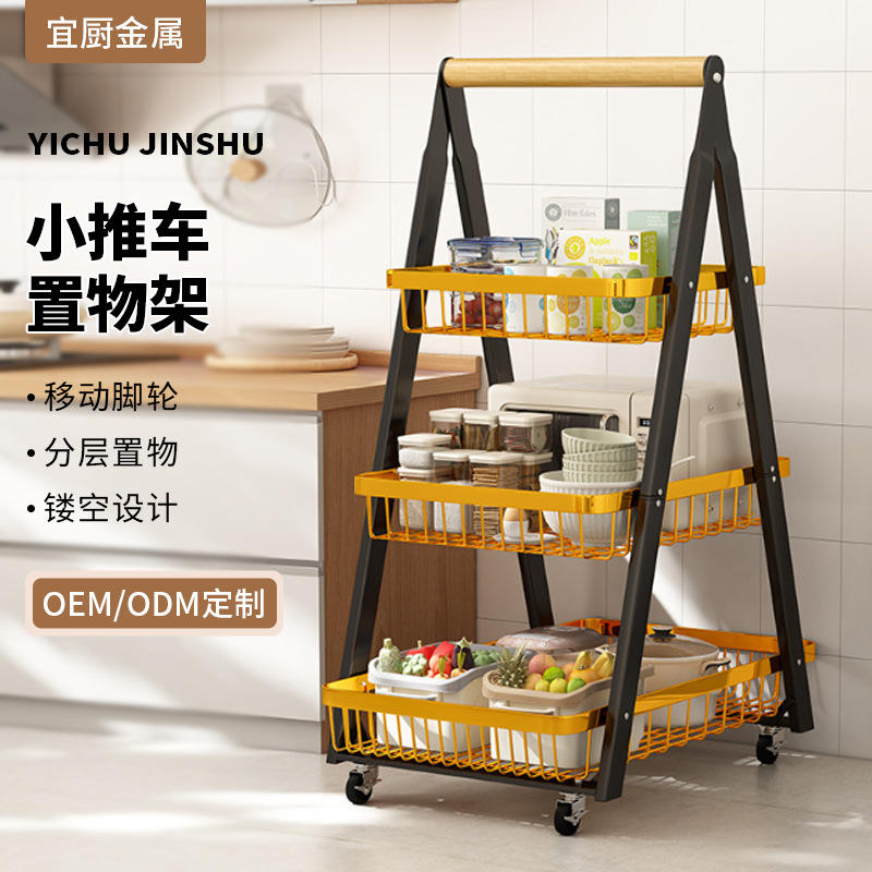 Étagère de rangement minimaliste en métal à trois niveaux, mobile, avec roulettes, pour cuisine, salon et chambre