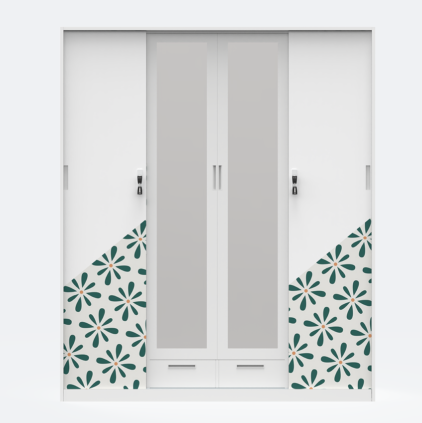 Armoire minimaliste en métal Armoire de rangement en acier bon marché personnalisée Armoire imprimée à 4 portes coulissantes