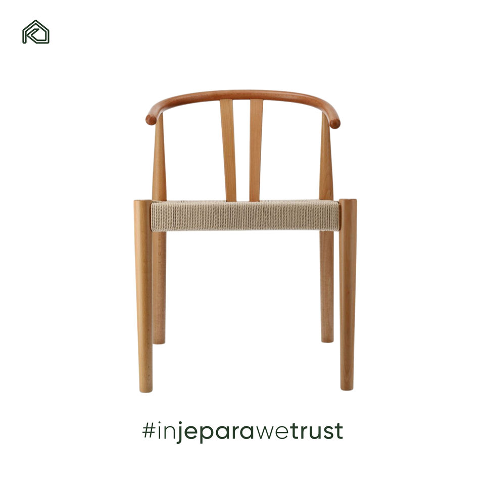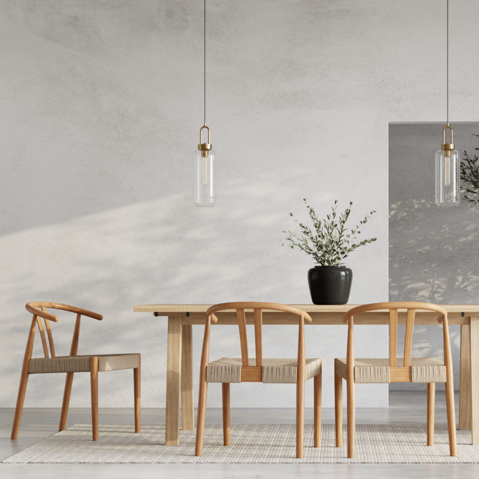 Chaise de salle à manger design minimaliste moderne avec structure en bois et assise en corde tressée, écologique et durable pour appartement