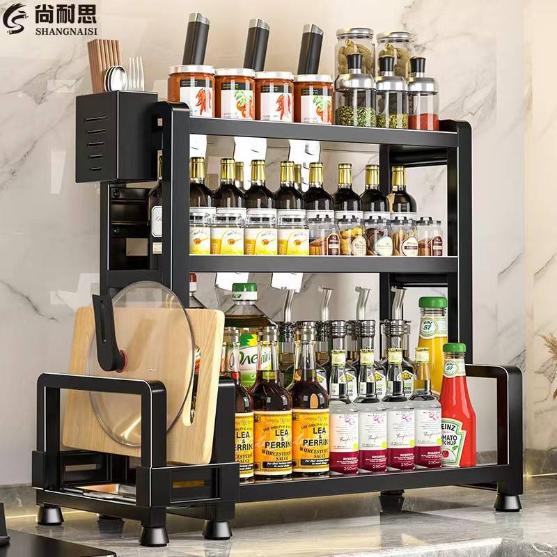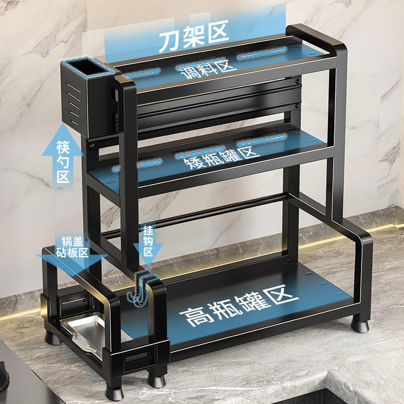 Étagère à épices minimaliste multifonctionnelle pour cuisine, type sur pied, rectangulaire, en acier au carbone, pour ustensiles, baguettes et couteaux